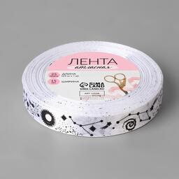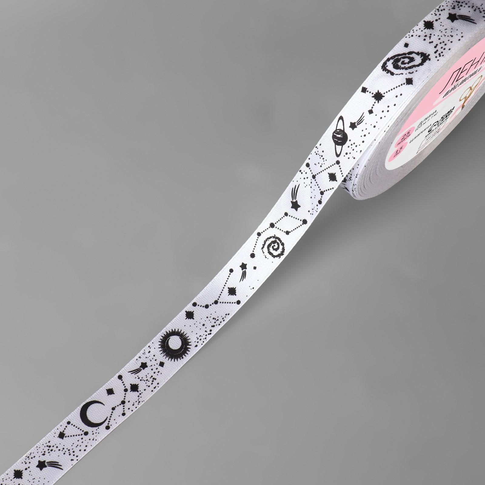 Лента атласная «Космос», 15 мм × 23 ± 1 м, цвет белый/чёрный №001