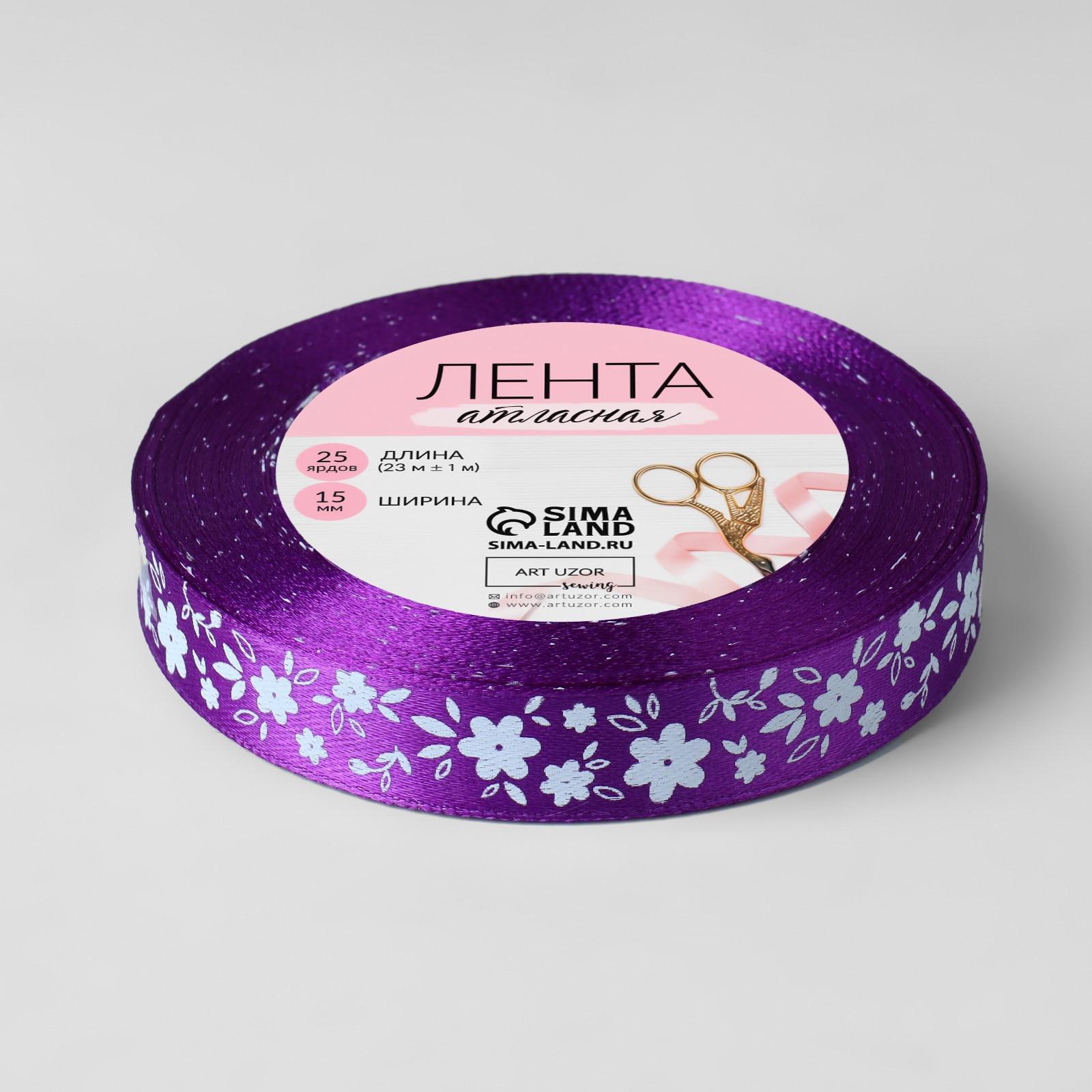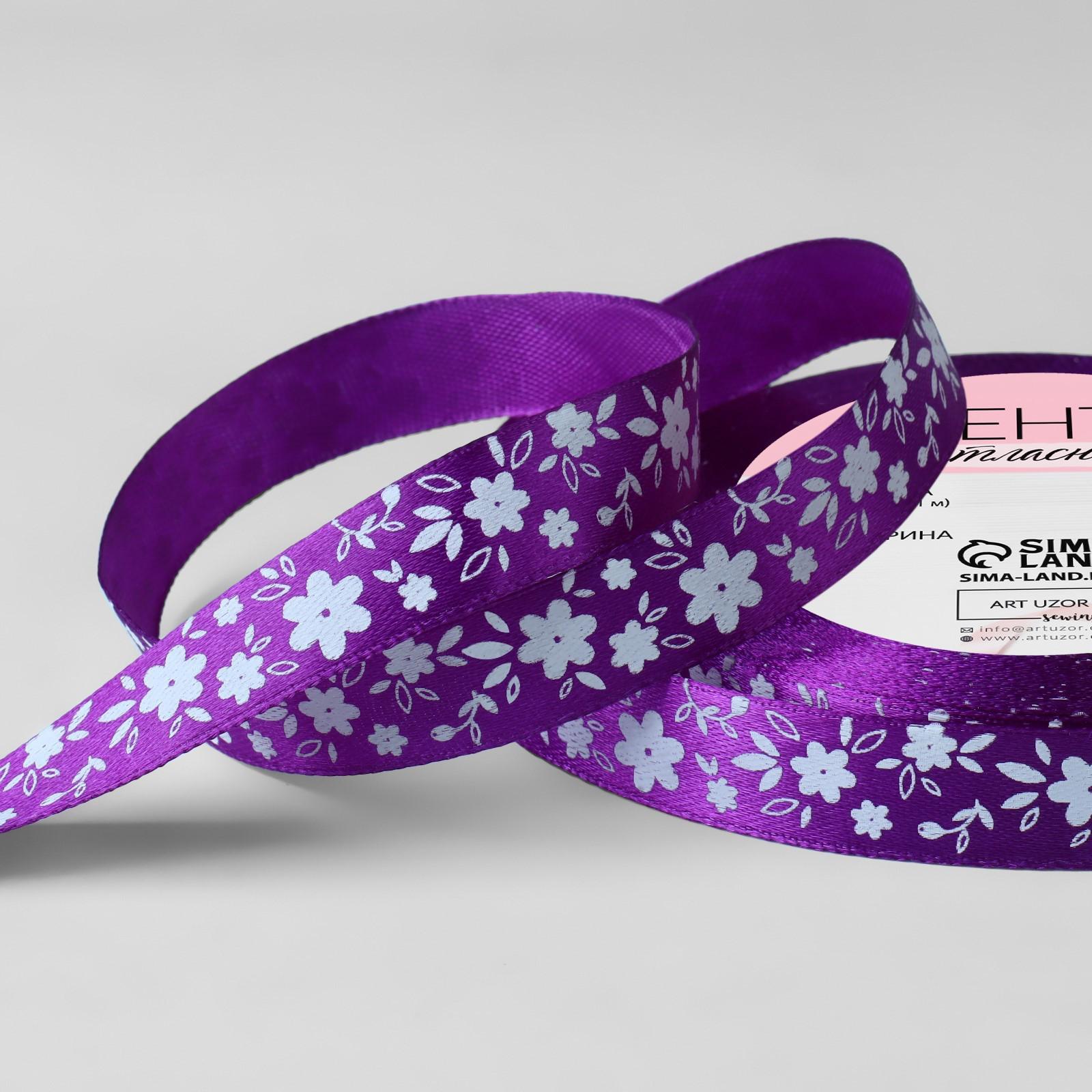 Лента атласная «Цветочки», 15 мм × 23 ± 1 м, цвет фиолетовый/белый №035