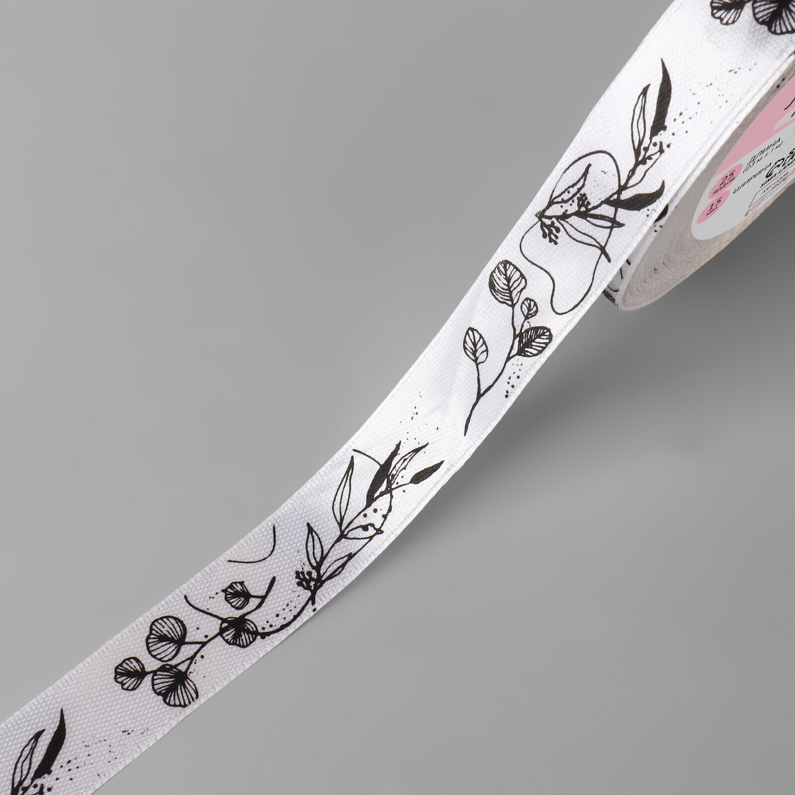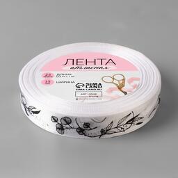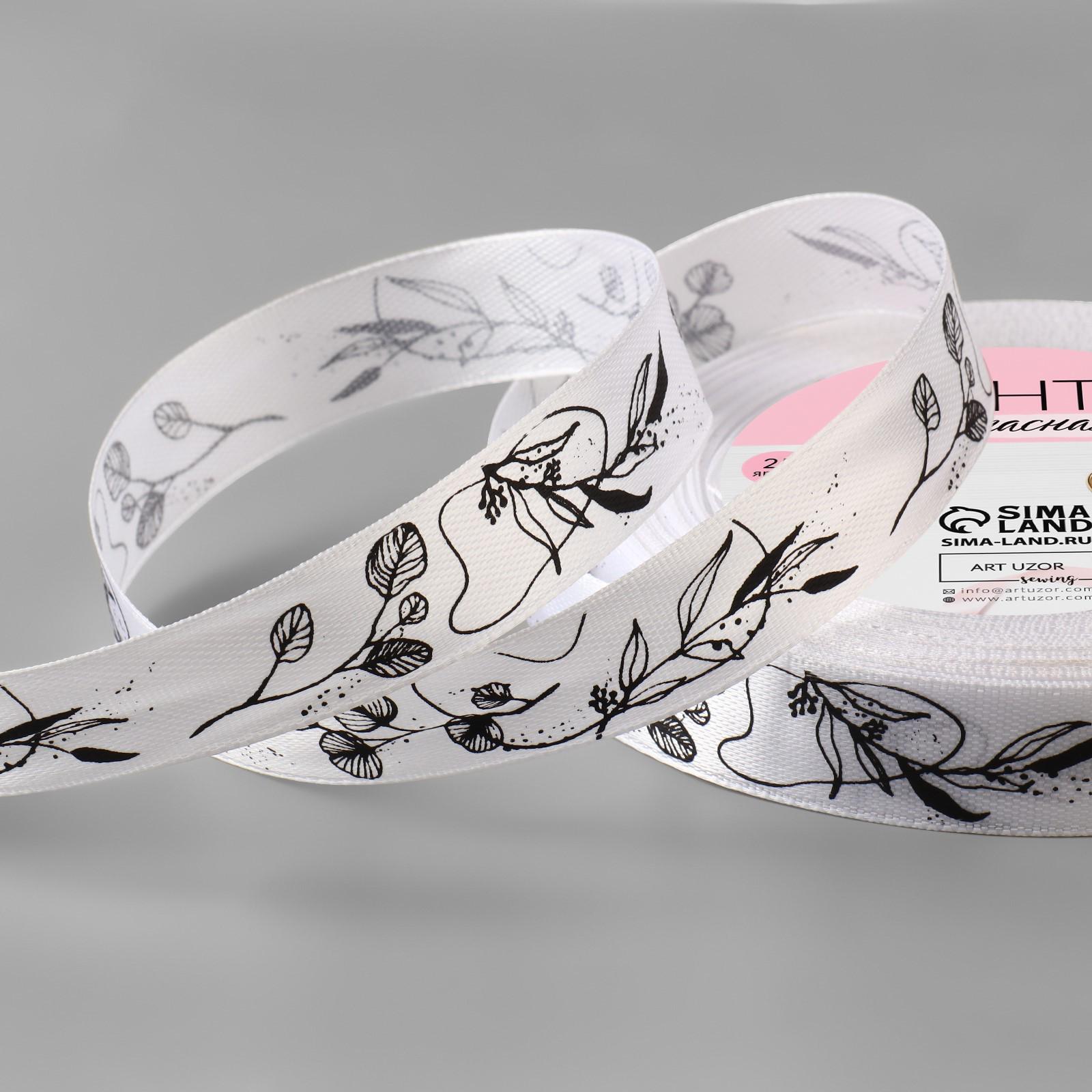 Лента атласная «Ветви», 15 мм × 23 ± 1 м, цвет белый/чёрный №001