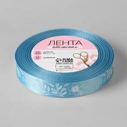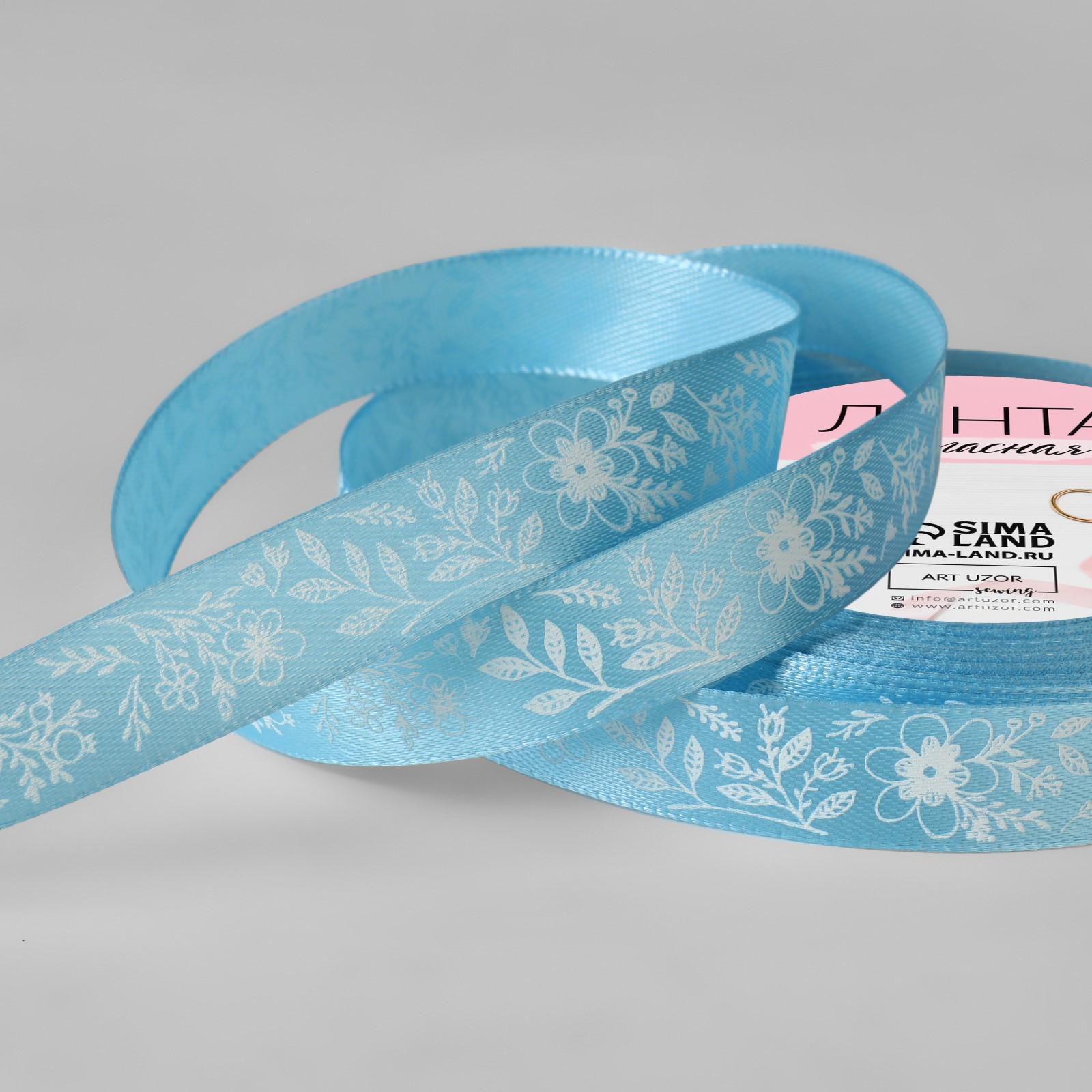 Лента атласная «Цветочки», 15 мм × 23 ± 1 м, цвет голубой/белый №187