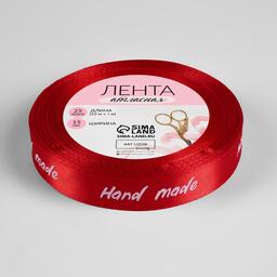 Лента атласная «Hand Made», 15 мм × 23 ± 1 м, цвет красный