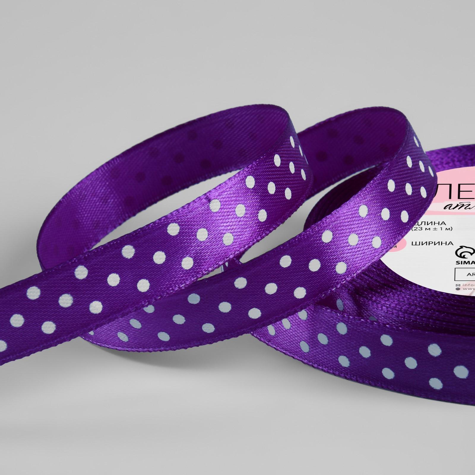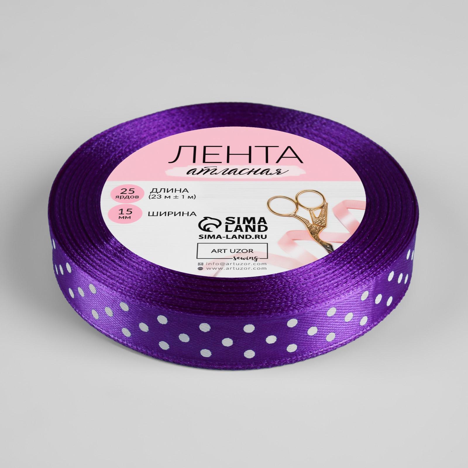 Лента атласная «Горошек», 15 мм × 23 ± 1 м, цвет фиолетовый №154