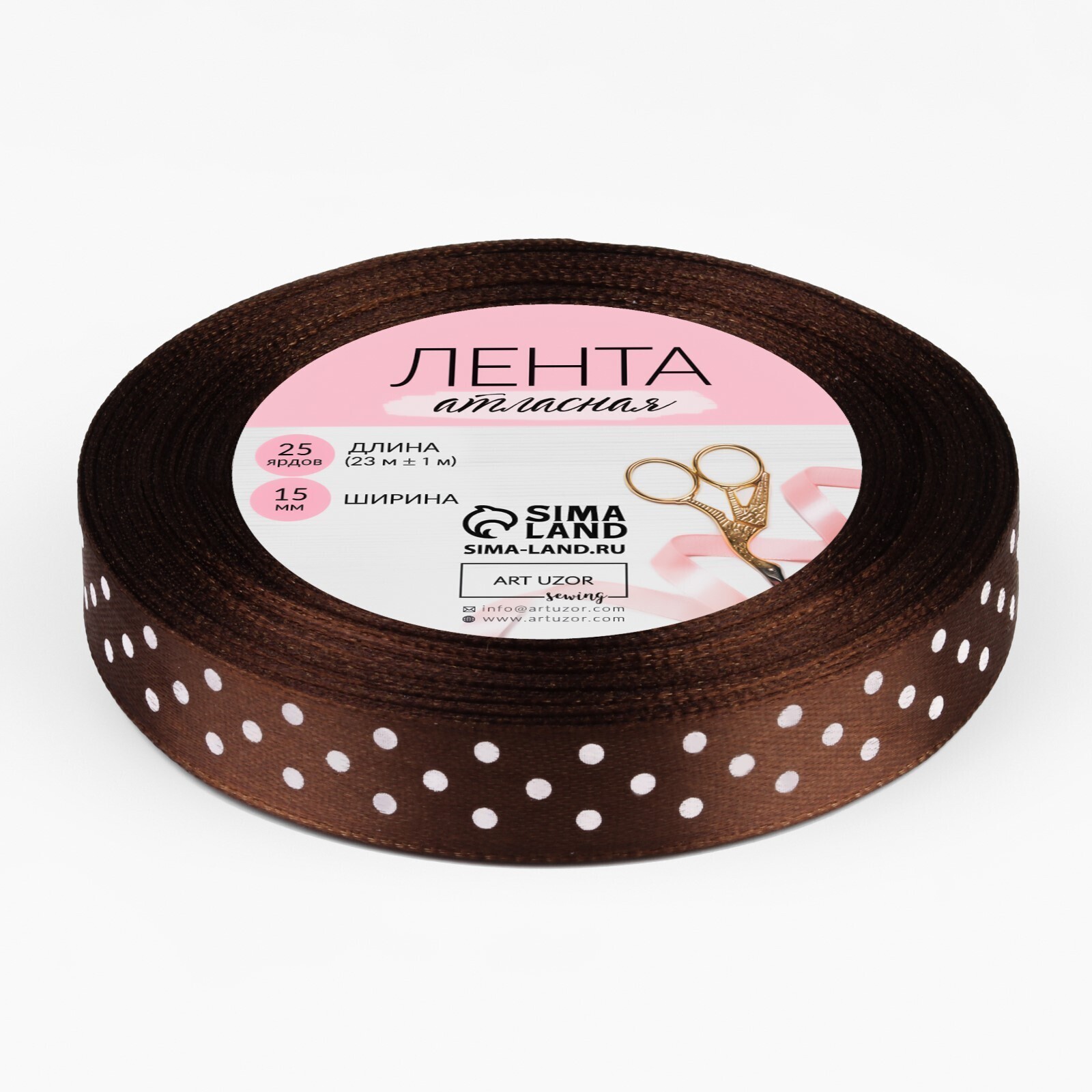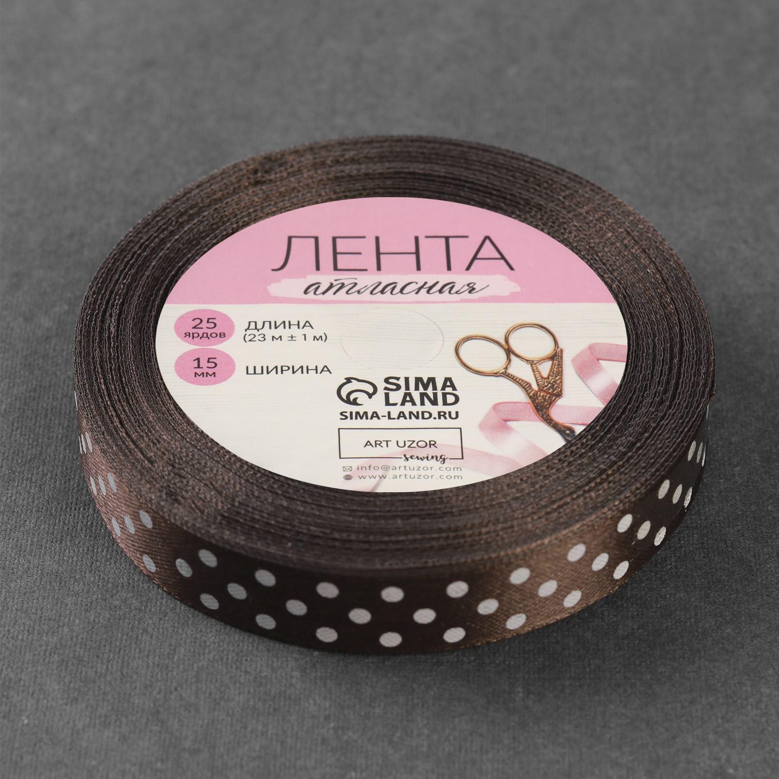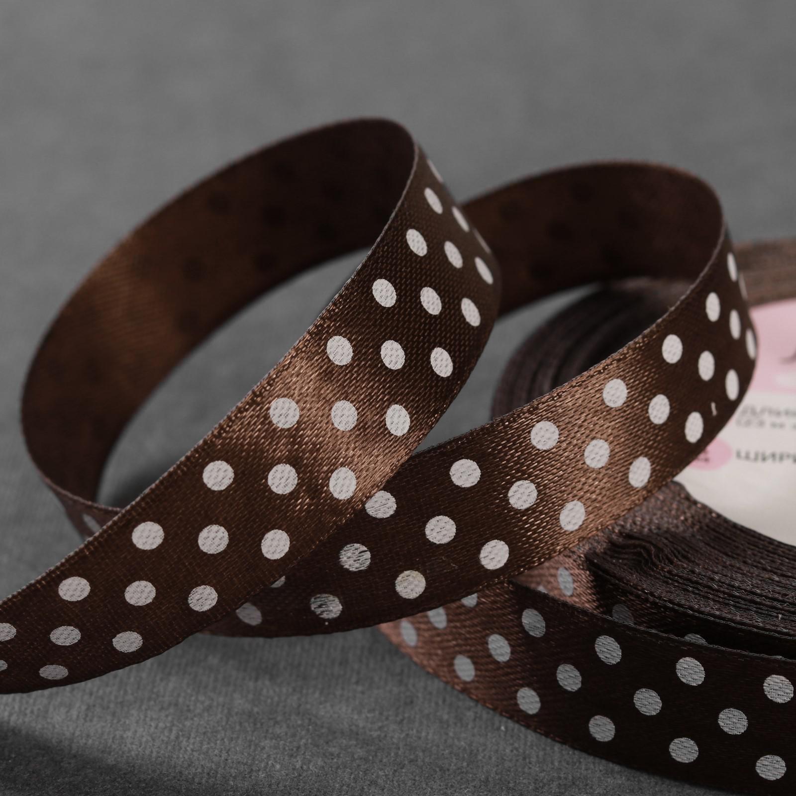 Лента атласная «Горох», 15 мм × 23 ± 1 м, цвет коричневый №032