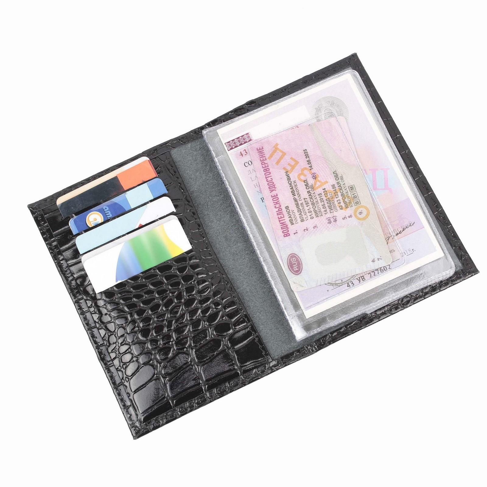 Обложка для автодокументов без застёжки, отдел для карт, цвет чёрный