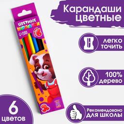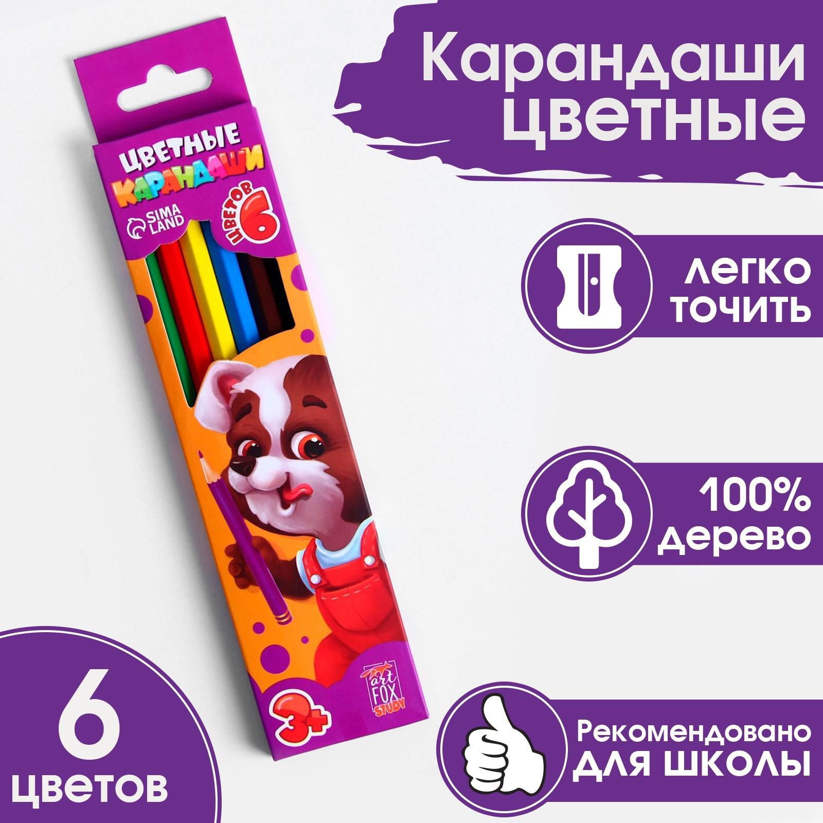 Карандаши 6 цветов ArtFox STUDY, шестигранные, деревянные, заточенные, европодвес
