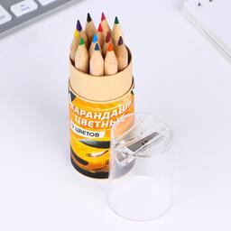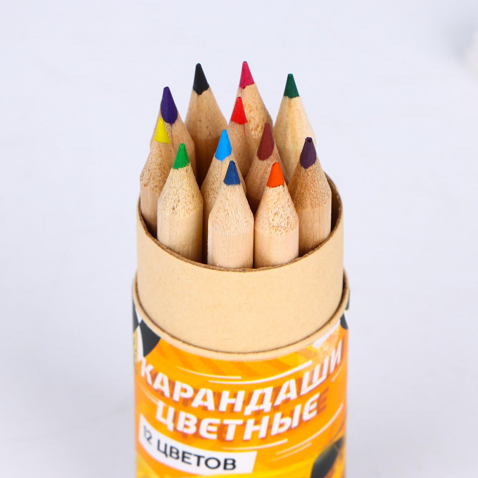 Набор цветных карандашей мини в тубусе «Гонки», 12 шт, с точилкой