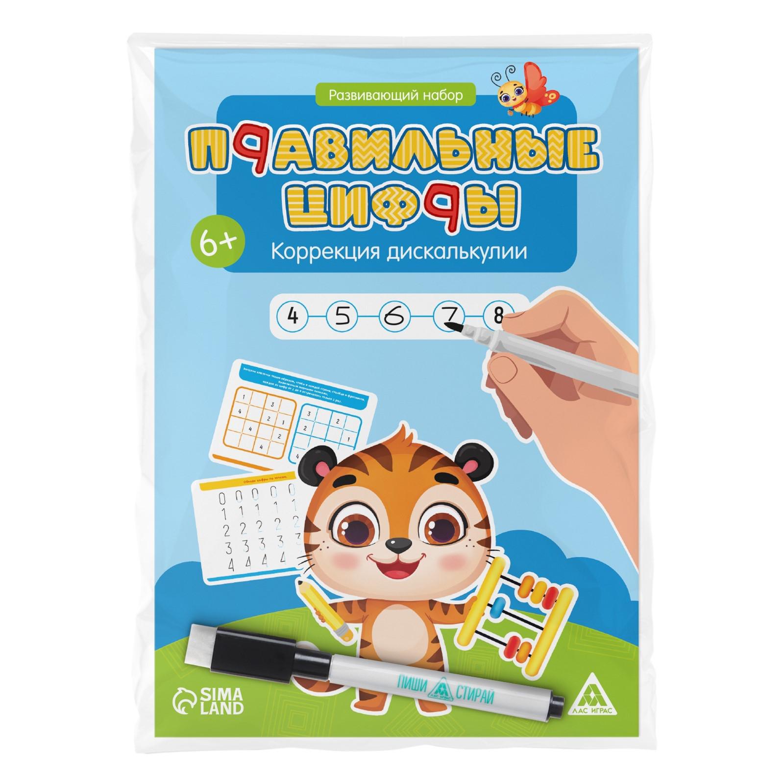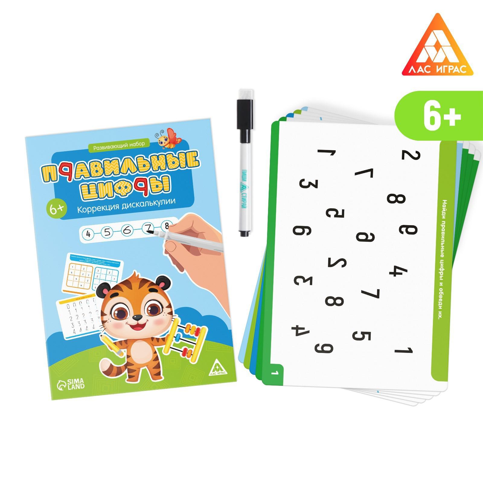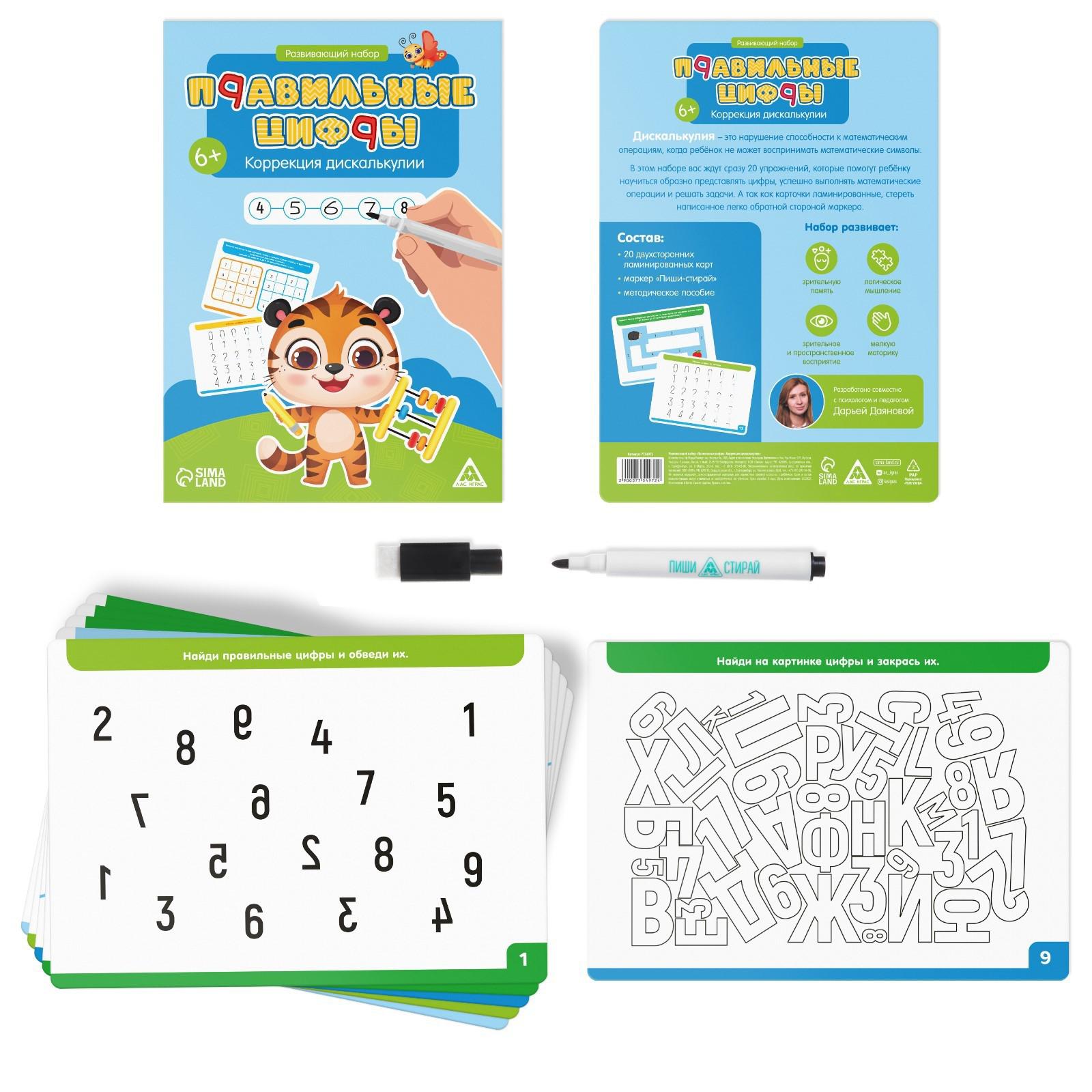 Развивающий набор «Правильные цифры. Коррекция дискалькулии», маркер, 20 карточек, 6+