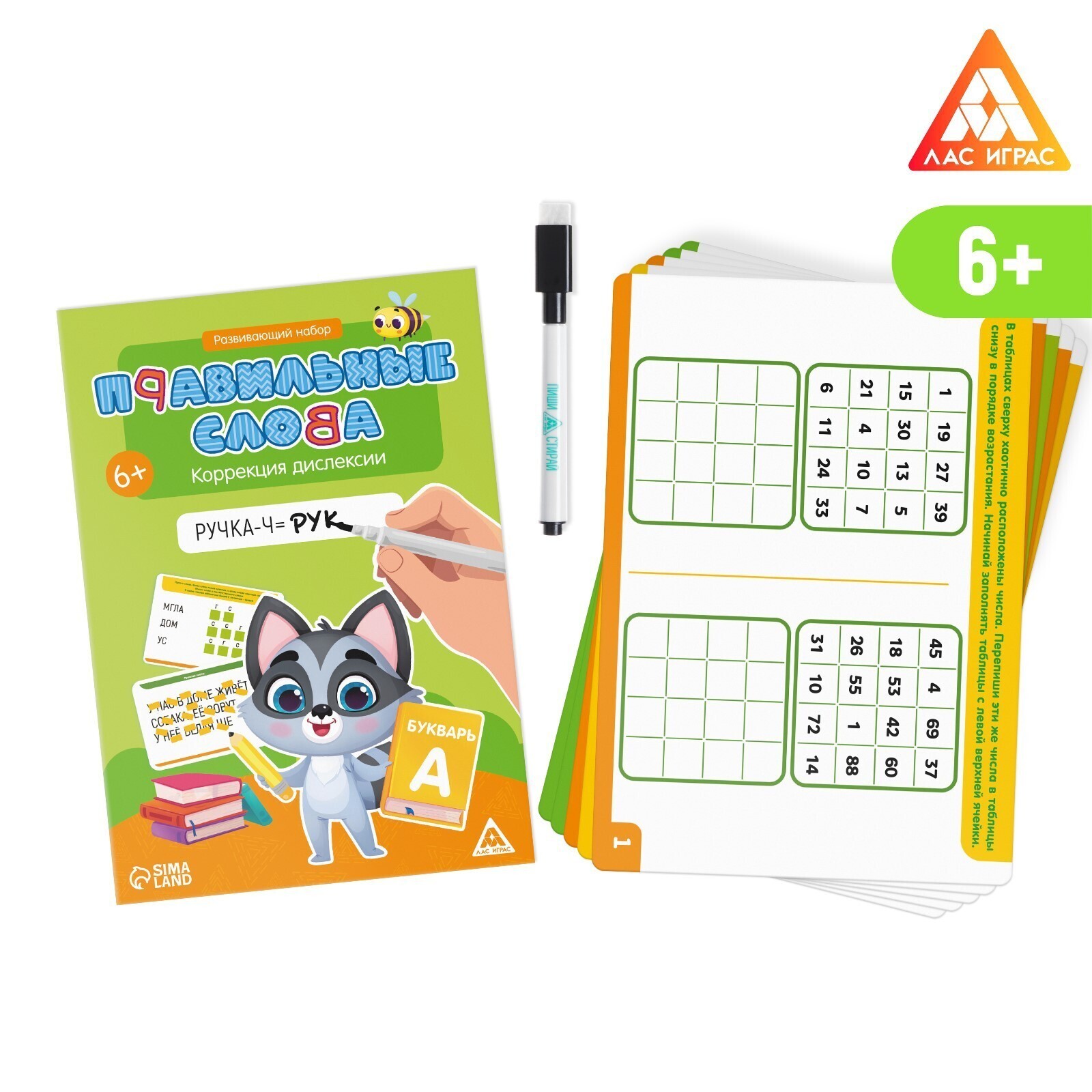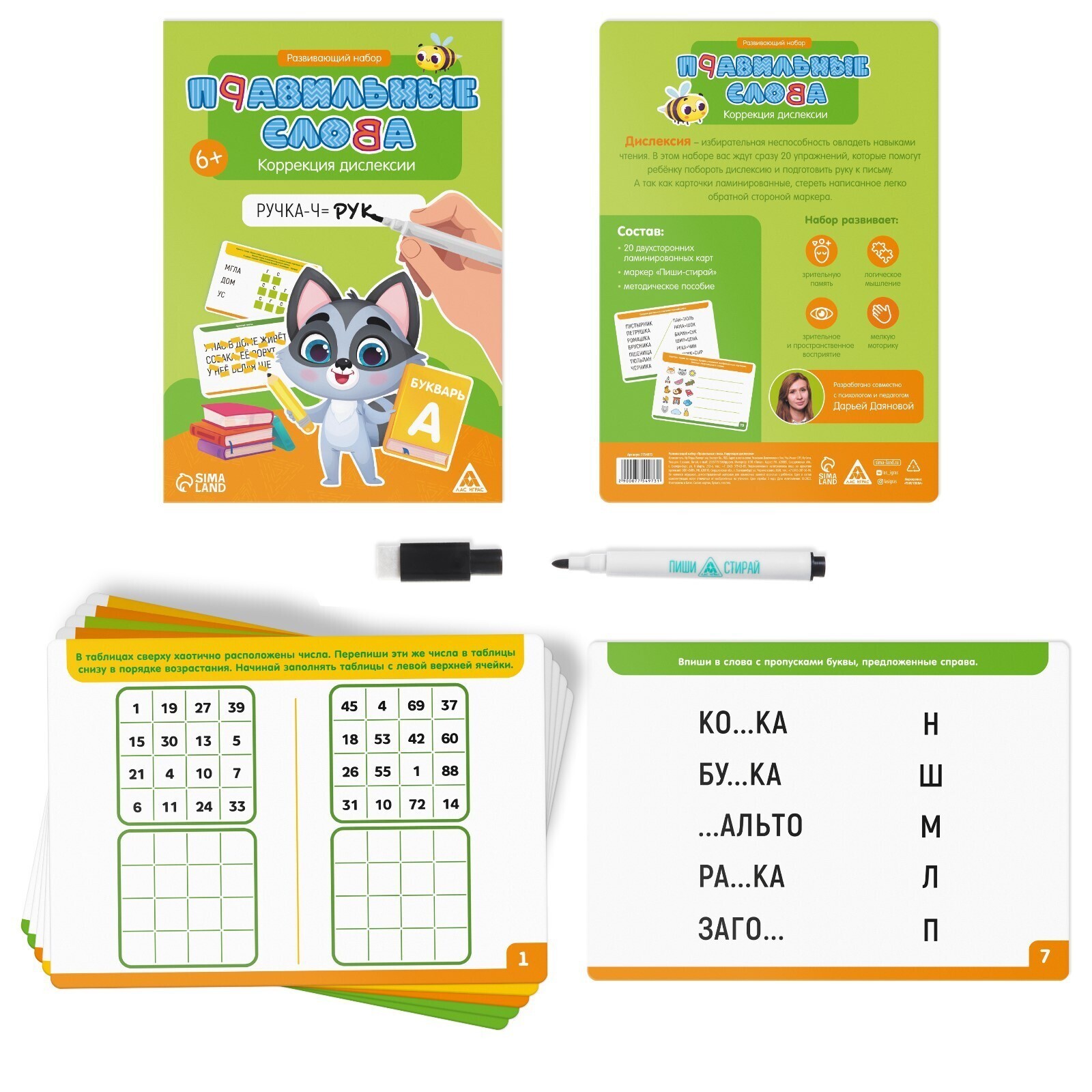 Развивающий набор «Правильные слова. Коррекция дислексии», маркер, 20 карточек, 6+