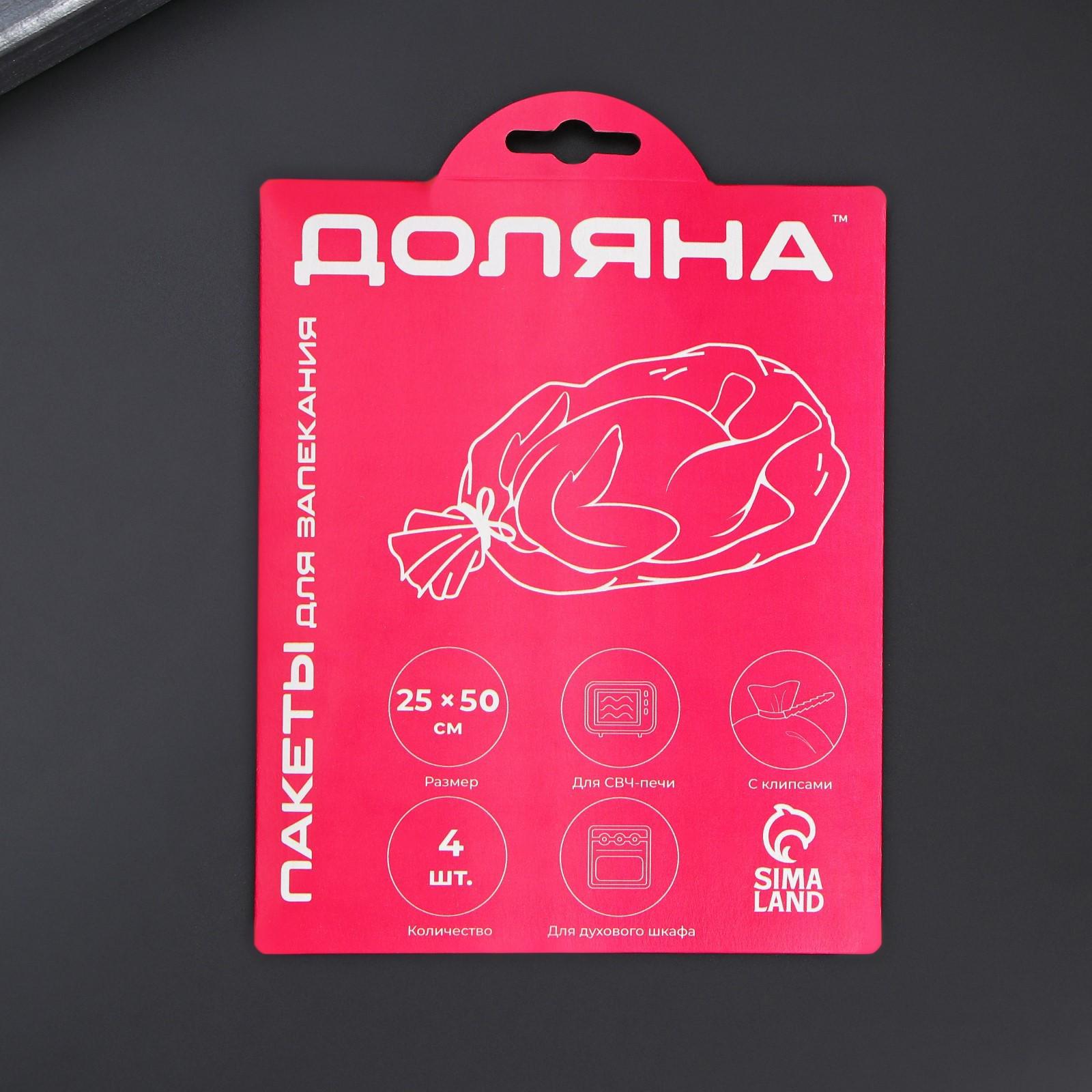 Пакеты для запекания рыбы Доляна, 25×50 см, 4 шт, с клипсами