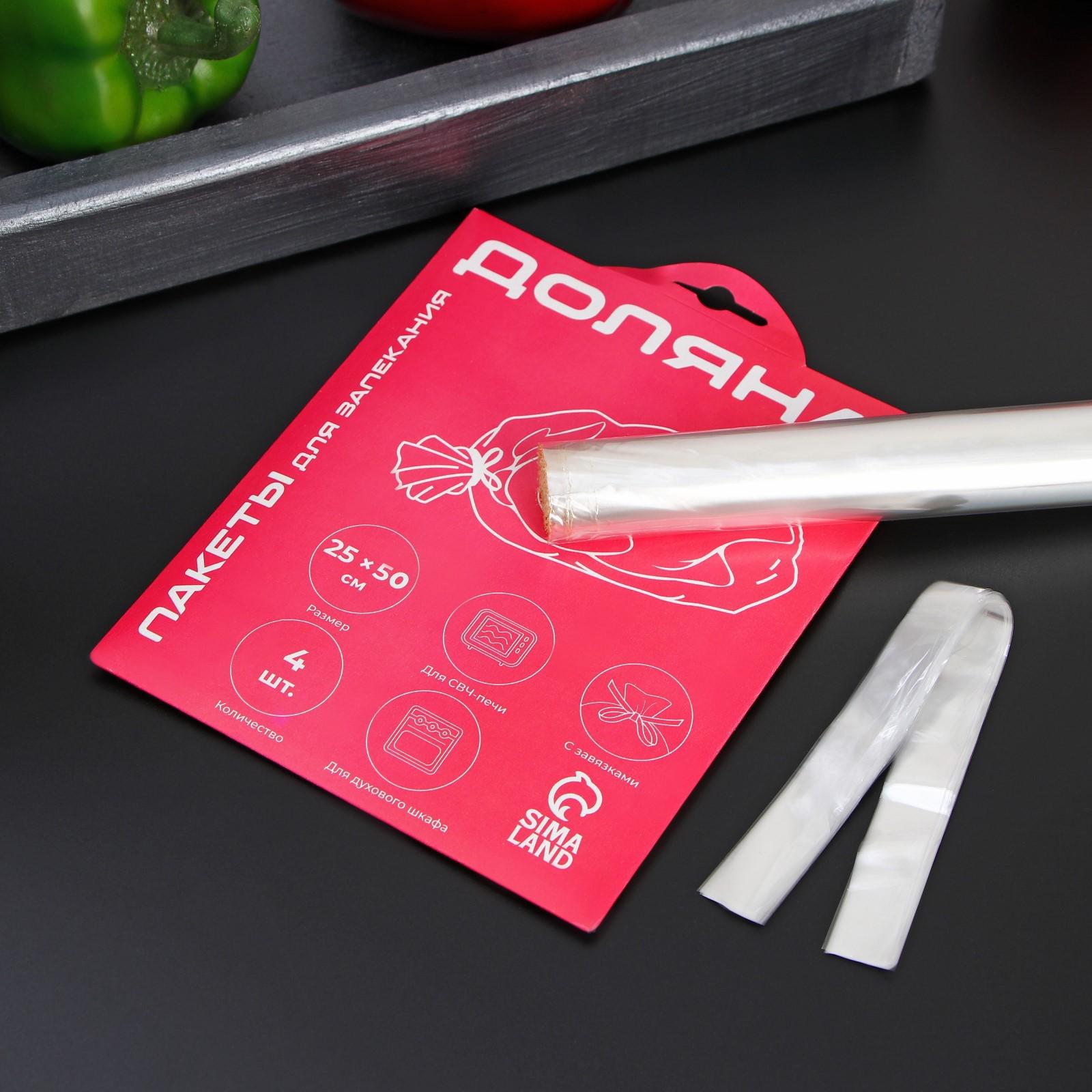Пакеты для запекания рыбы Доляна, 25×50 см, 4 шт, с завязками