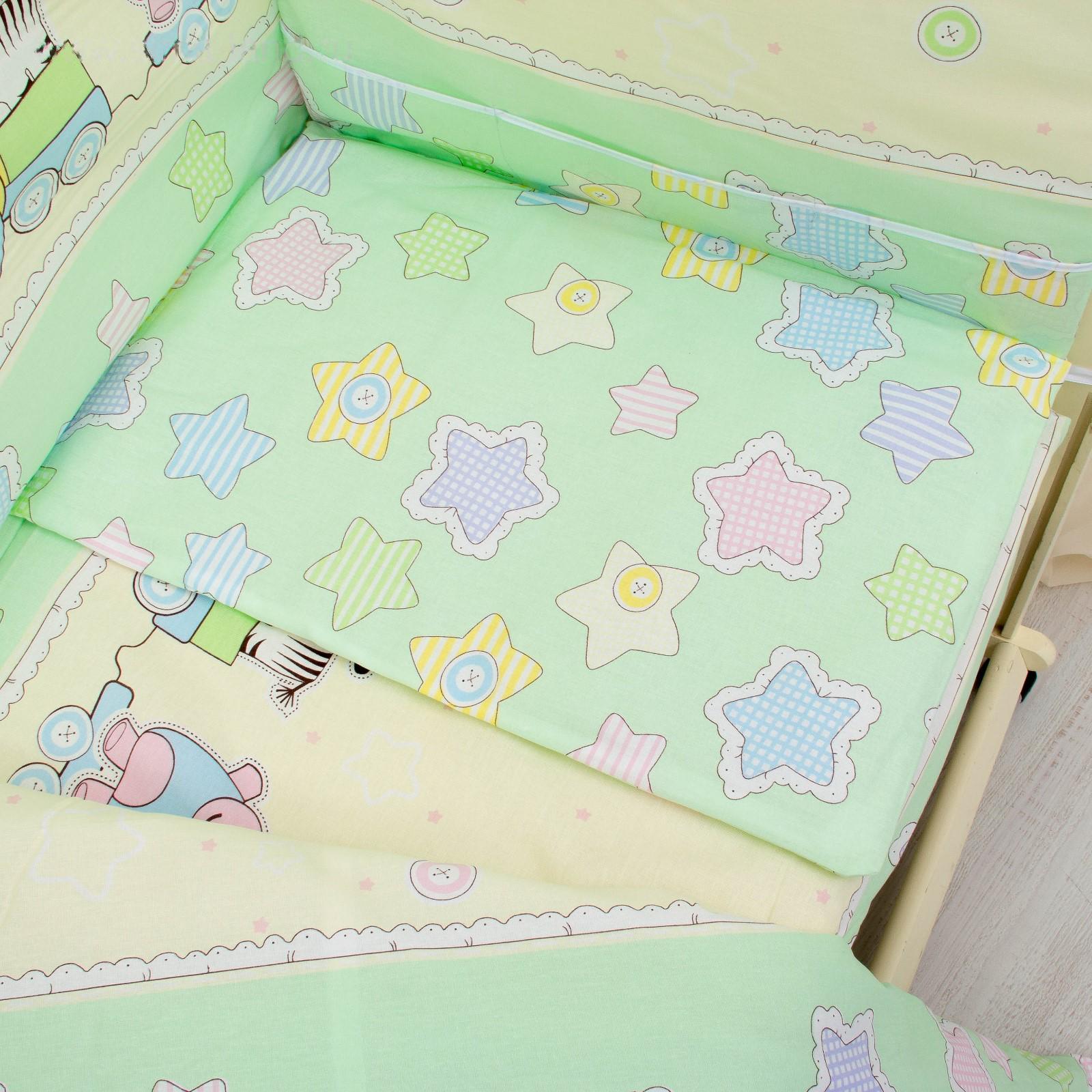 Комплект в кровать "Паровозик звёздочка" 6пр., зелёный, бязь/аэрофайбер, 120г/м, хл100%