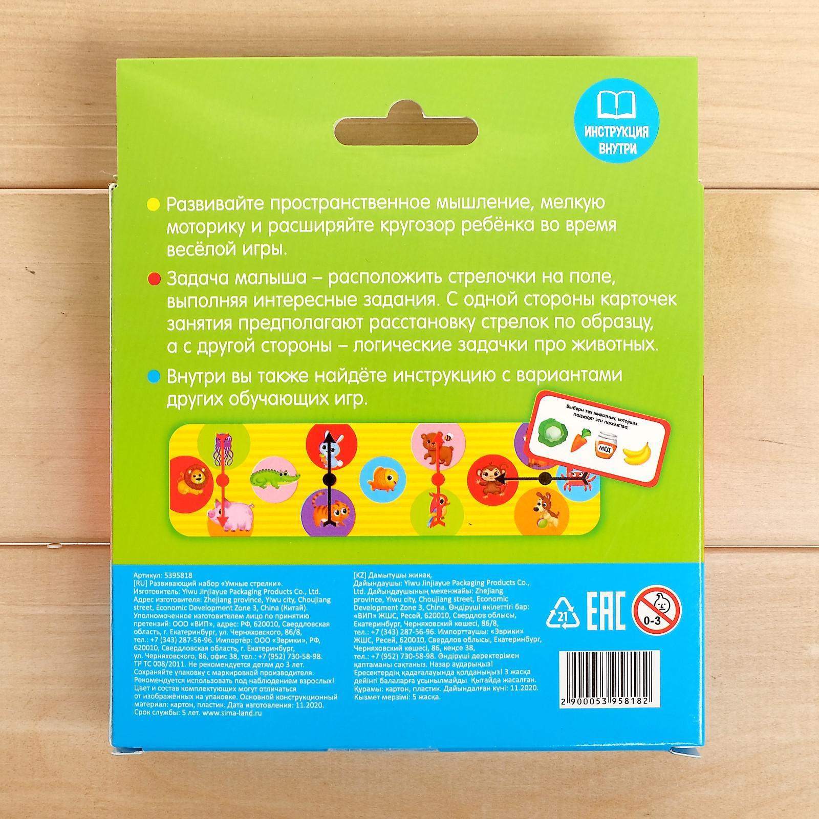 Развивающий набор «Умные стрелки» познакомят ребёнка с добрыми, весёлыми зверятами.
