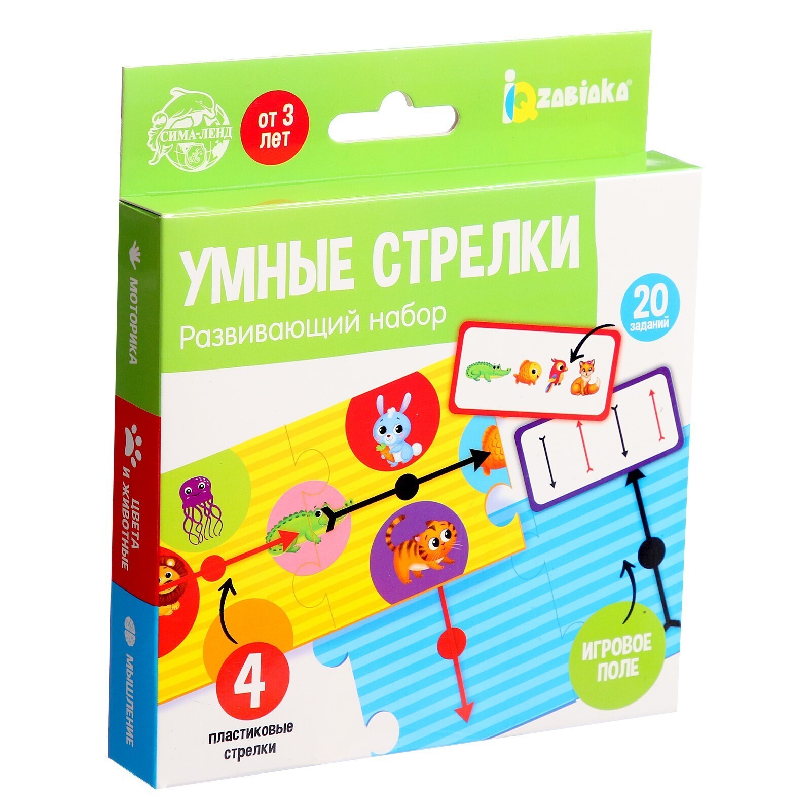 В комплекте есть 4 пластиковые стрелки и 20 заданий.