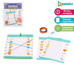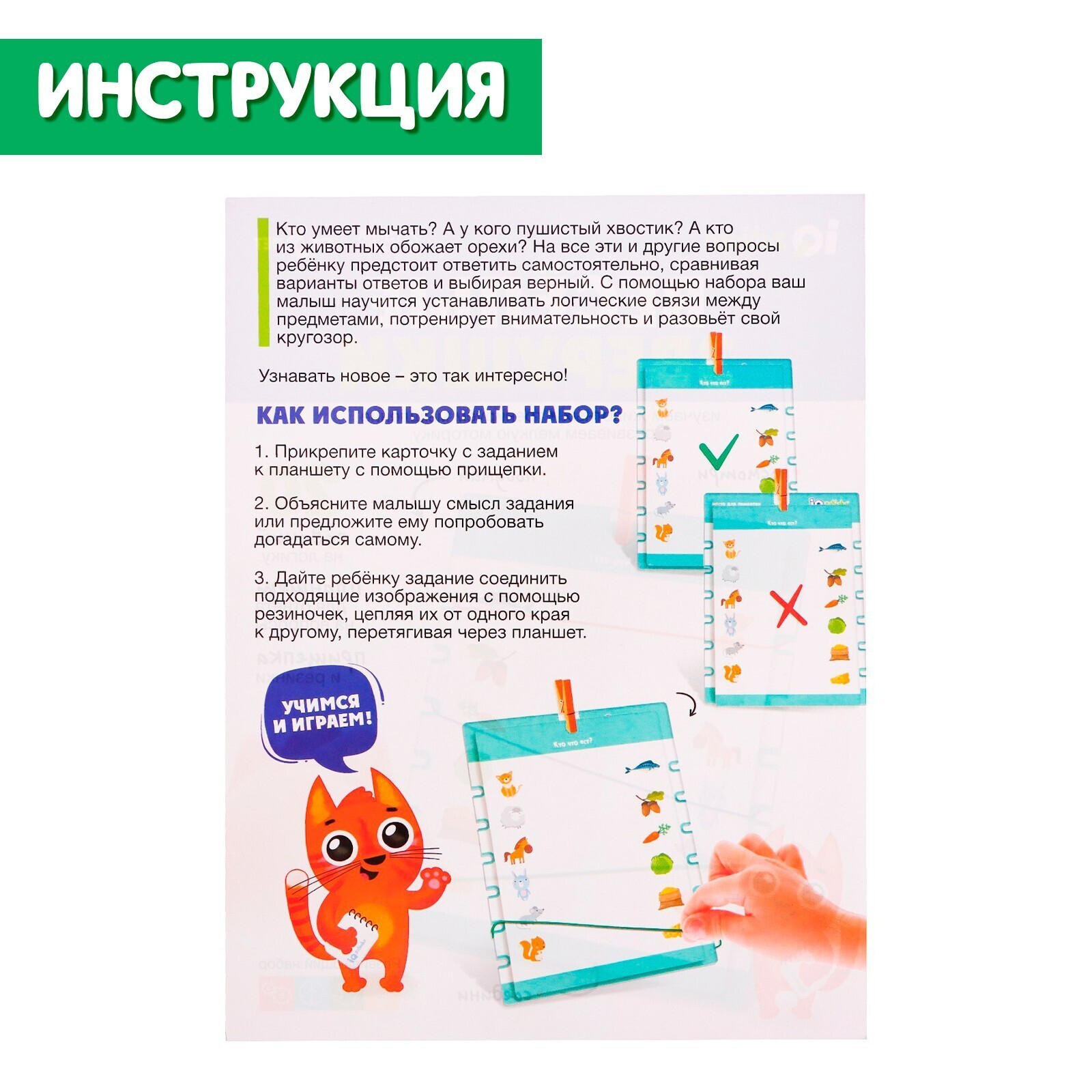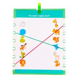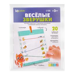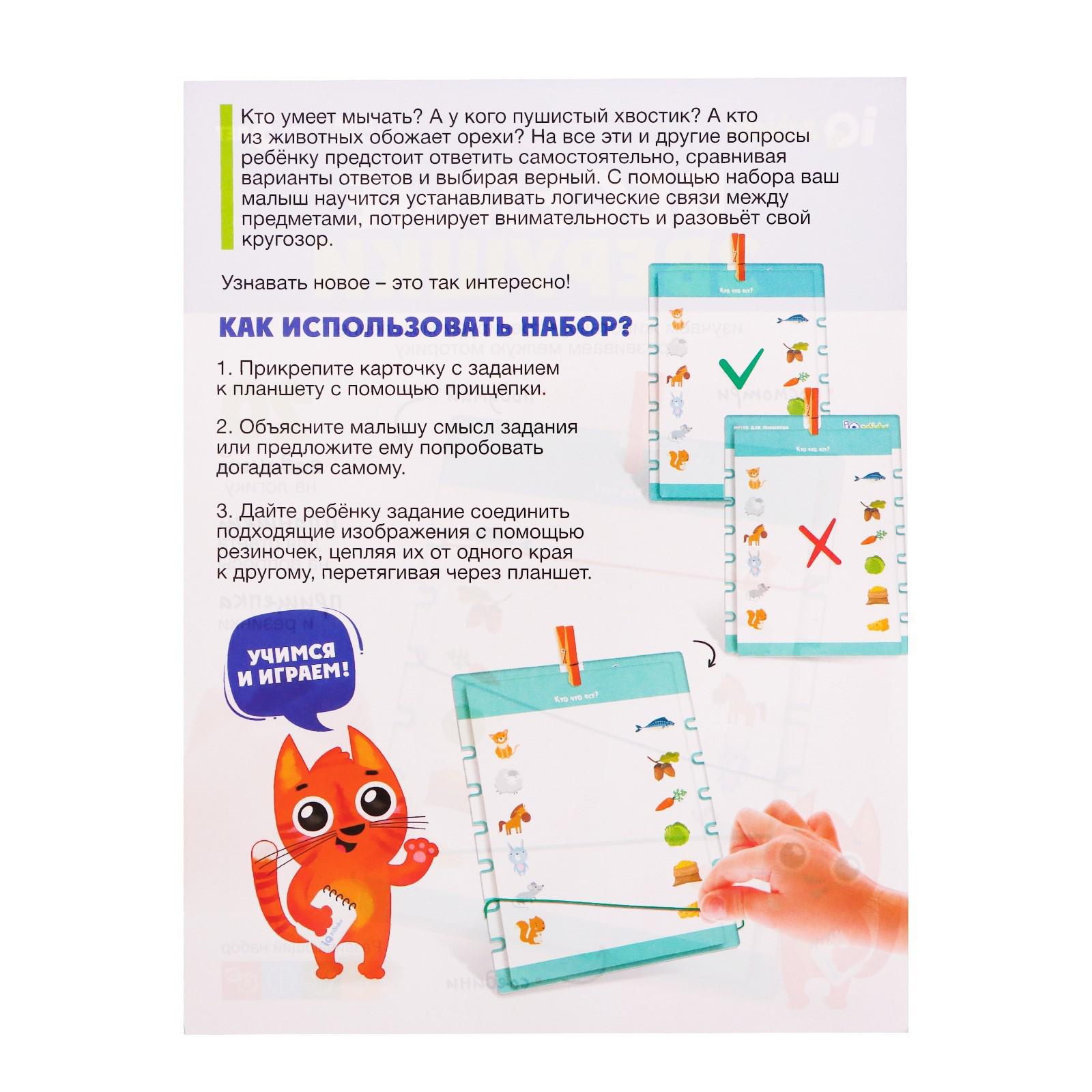 Развивающий набор «Весёлые зверушки» состоит из 20 увлекательных заданий на логику, планшета для карточек, резиночек и прищепки.
