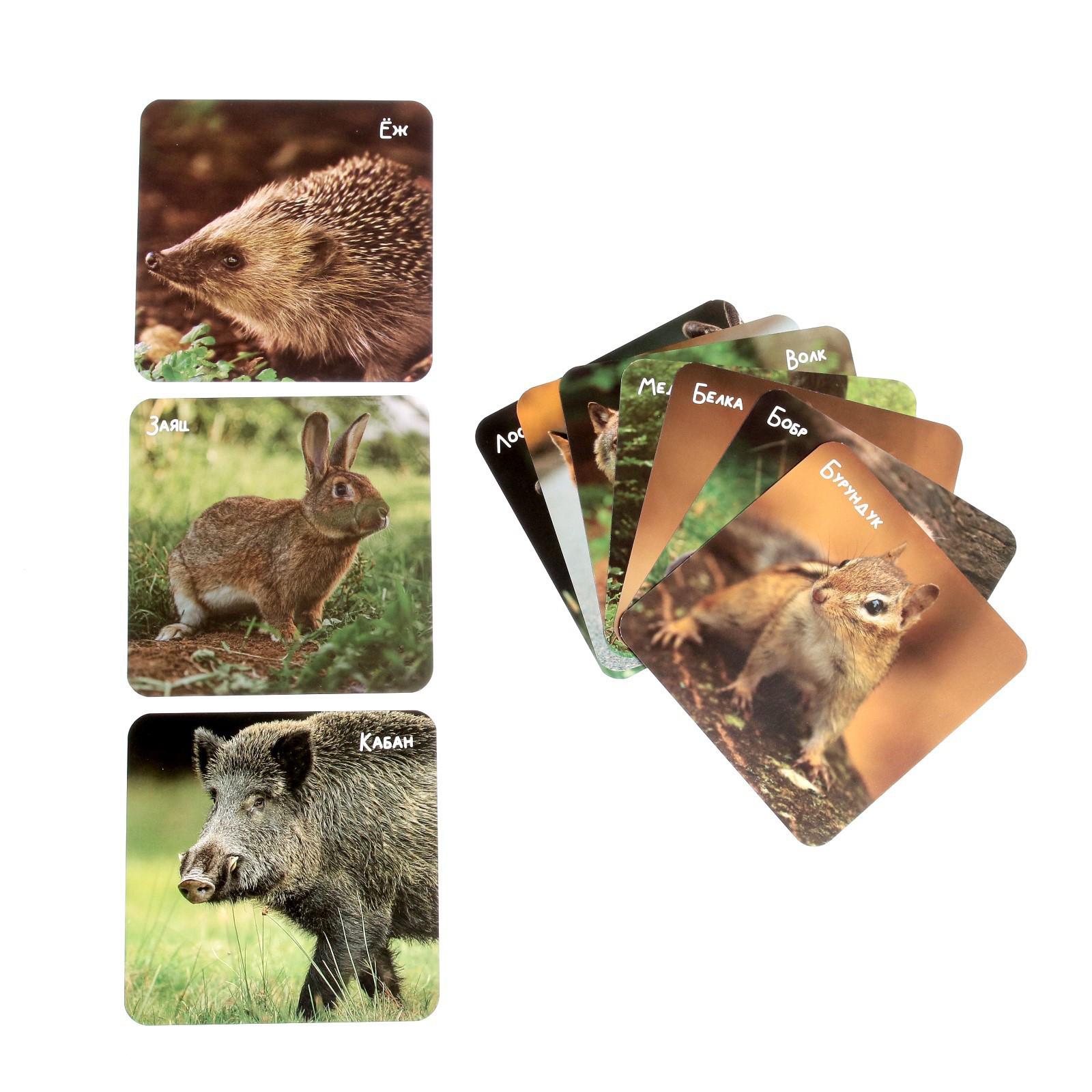 Разложите перед малышом все карточки с изображениями животных и расскажите о каждом: как они называются, где живут и какую пользу приносят людям. Для этого вы можете использовать подсказки с обратной стороны карточек.