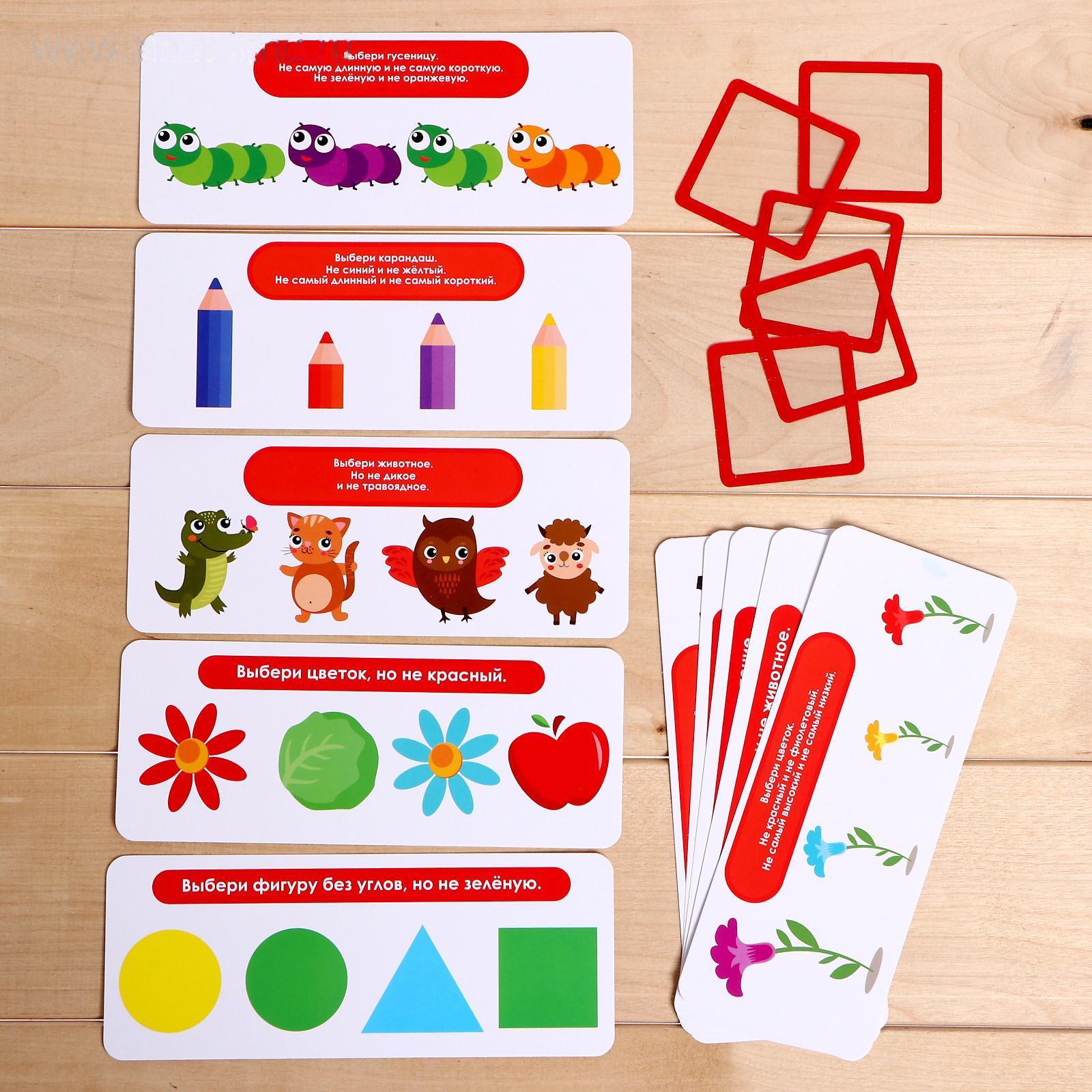 Набор поможет в игровой форме научить ребёнка рассуждать логически. Ему предстоит определить, по какому признаку объединены предметы, и найти лишний.