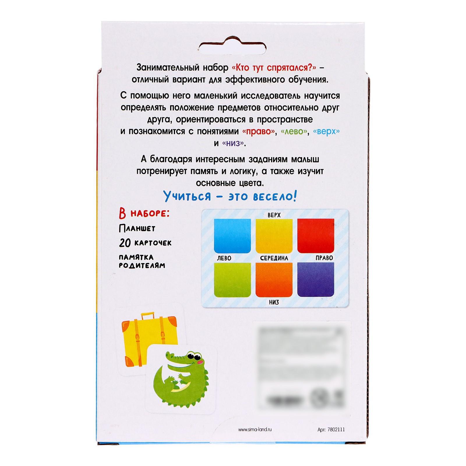 С развивающим набором «Кто тут спрятался?» малыш в лёгкой игровой форме научится определять положение предметов относительно друг друга, ориентироваться в пространстве и познакомится с понятиями «право», «лево», «верх», «низ».