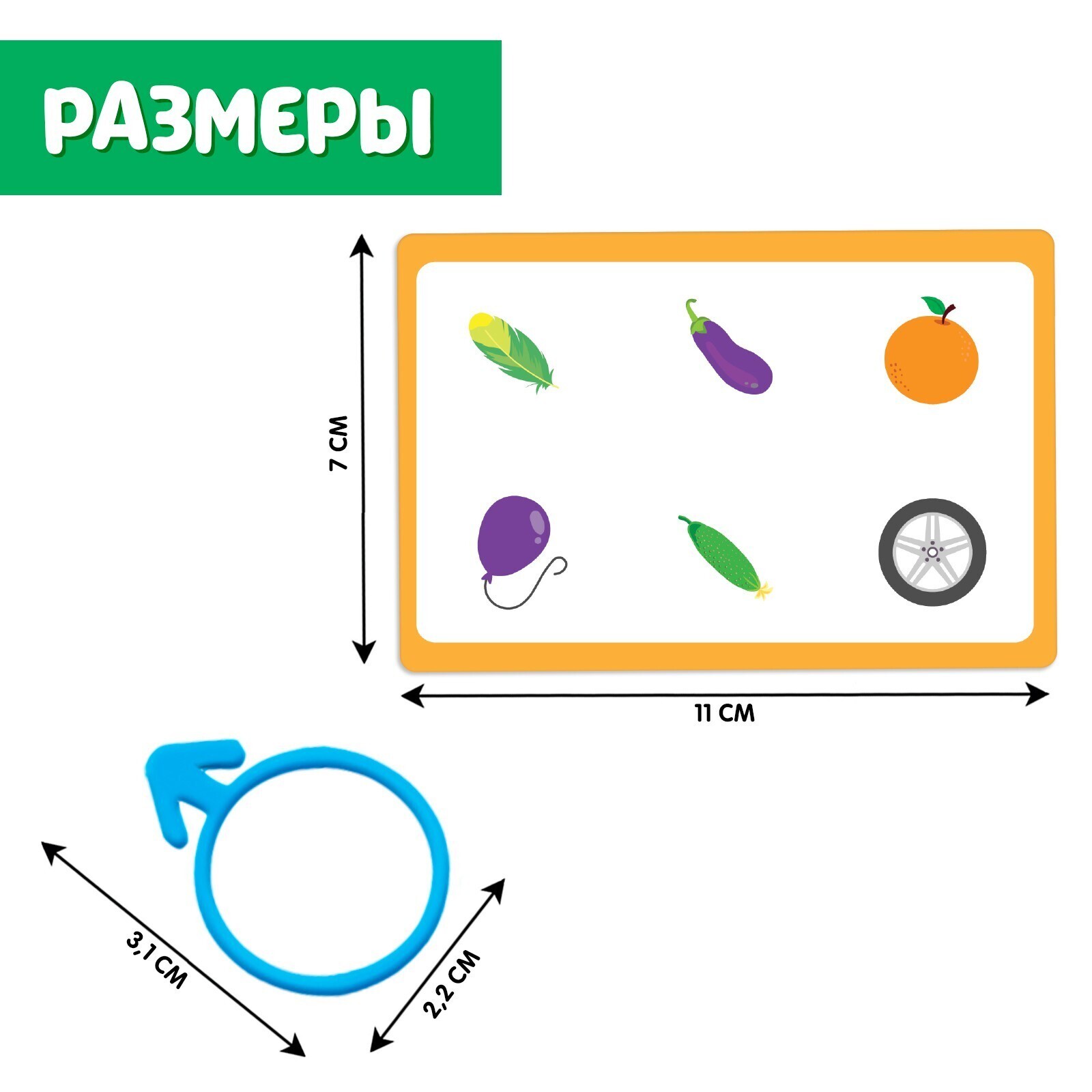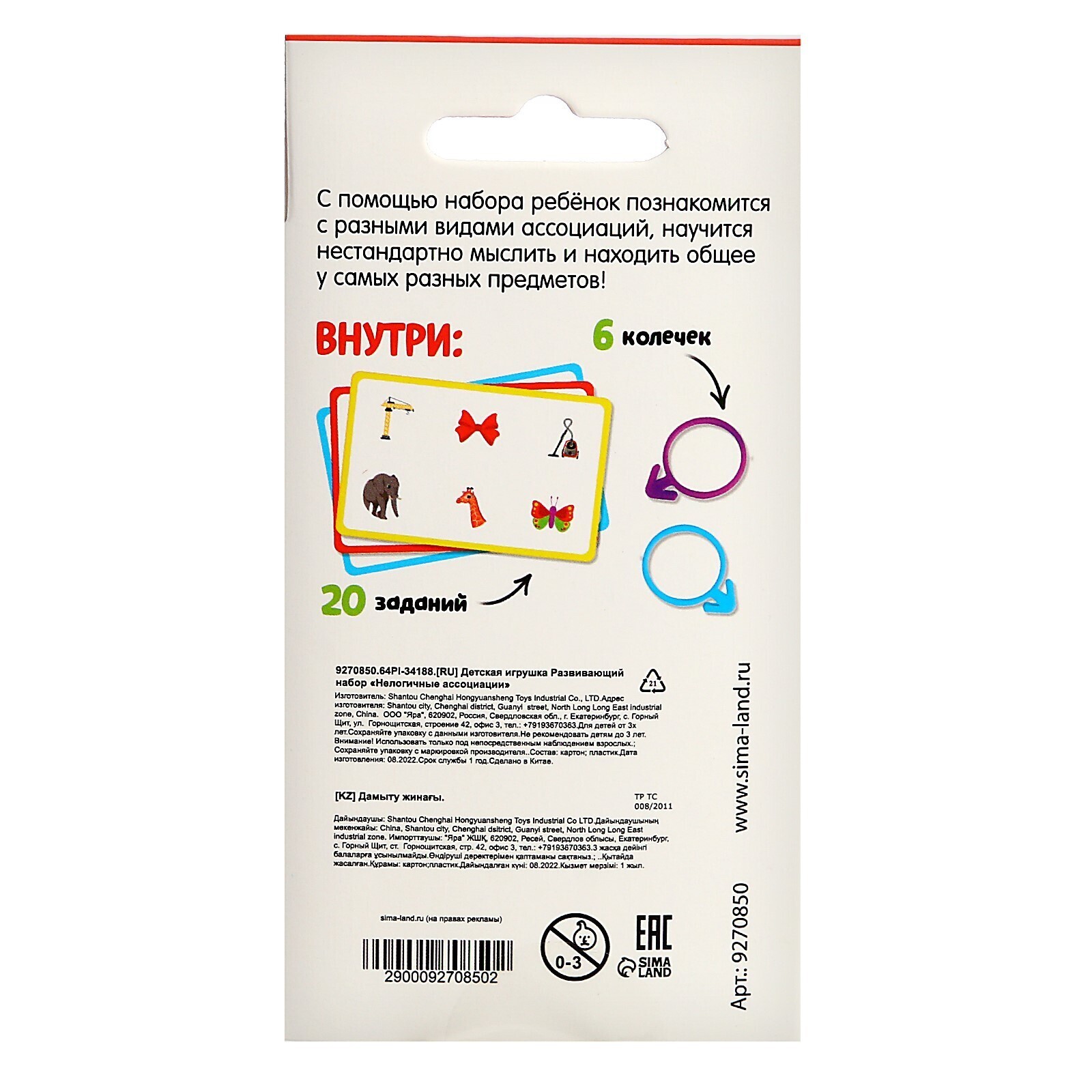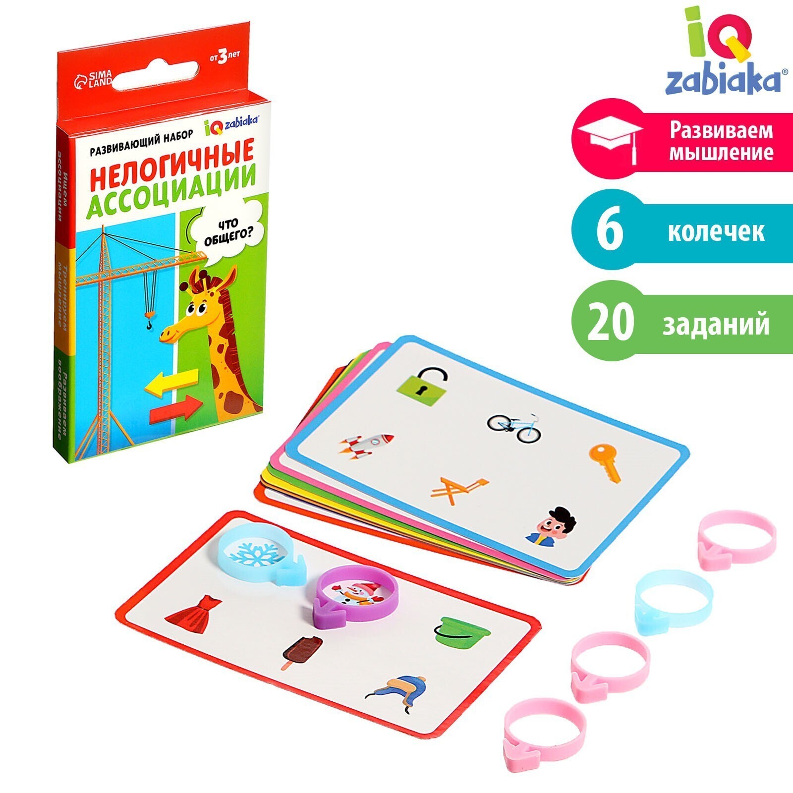 Внутри вы найдёте 20 заданий и 6 цветных колечек.