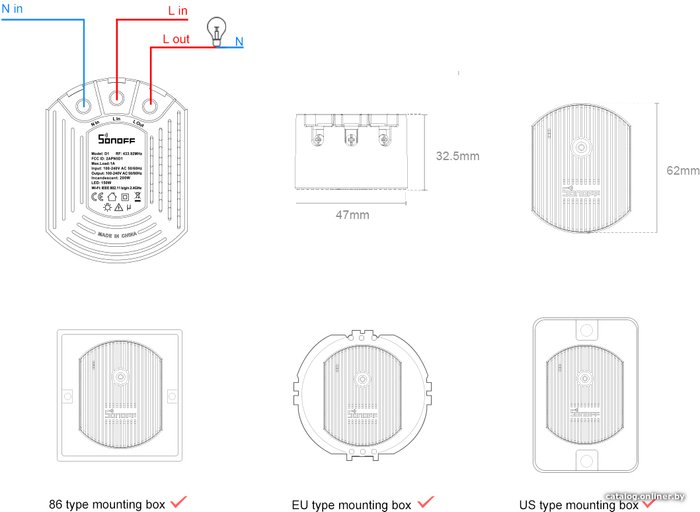 • Комплектация Sonoff D1Sonoff RM433 R2Sonoff RM433R2-Base