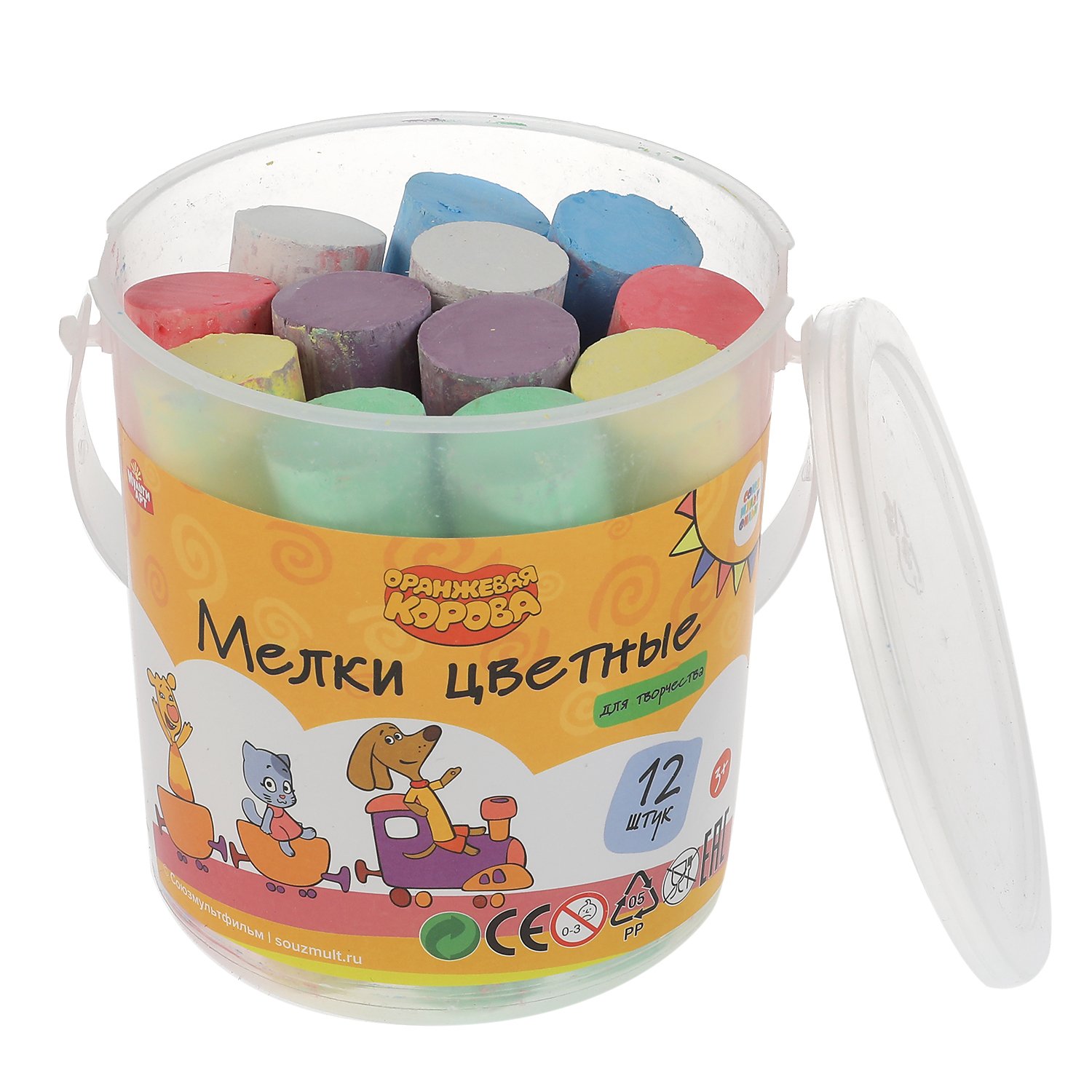 Мелки цветные МультиАРТ Асфальтовые Оранжевая корова 12 шт в ведре 306813