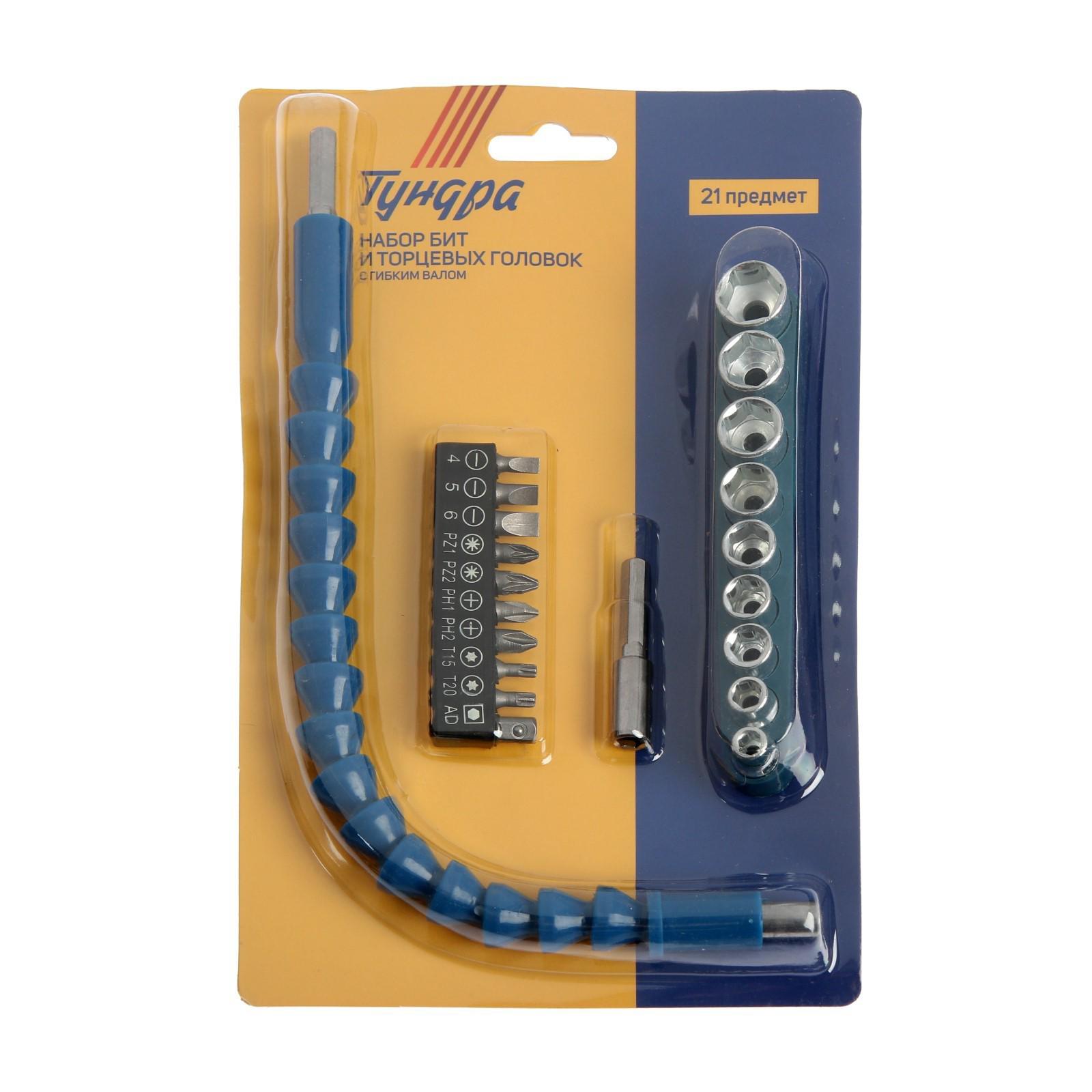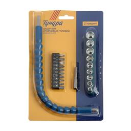 Набор бит с гибким удлинителем ТУНДРА, PH-SL-PZ-TX 25 мм, с торцевыми головками, 21 предмет 537817