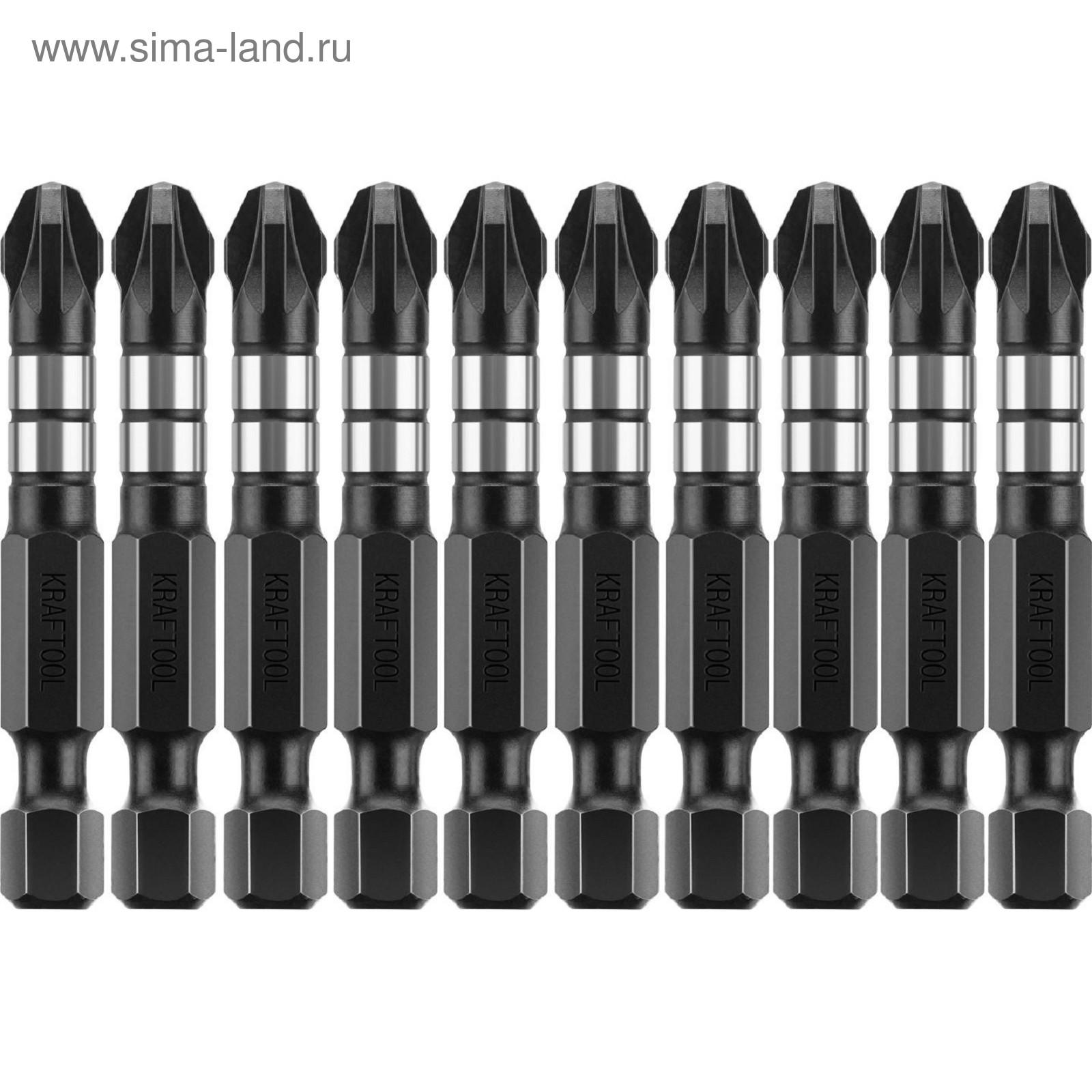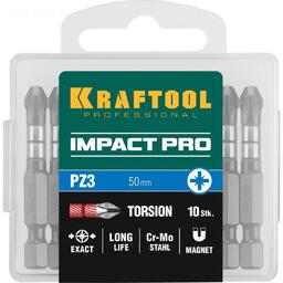 Биты KRAFTOOL Impact Pro 26193-3-50-S10, Е 1/4", 50 мм, PZ3, 10 шт., Pozidriv, кейс