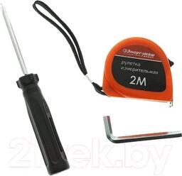 • В комплекте кейс, ключ, отвертка, рулетка, труборез, насадки, рукавицы