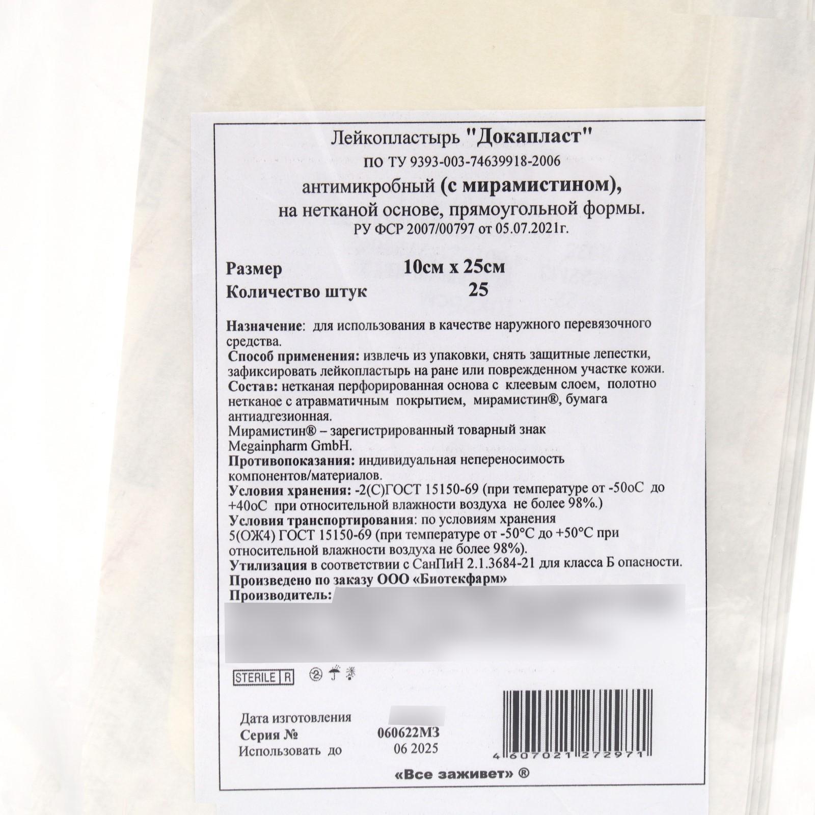 Лейкопластырь "Докапласт" Мирамистин, 10*25см., 25 шт