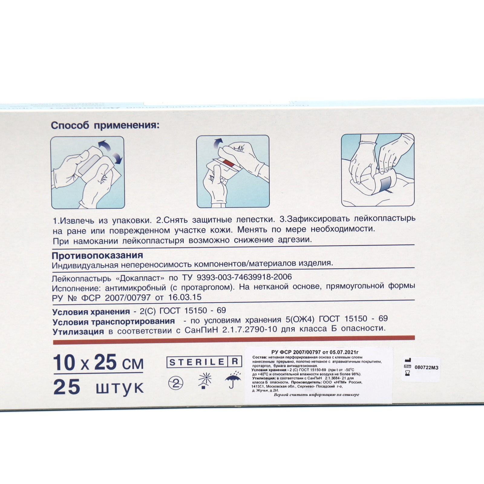 Лейкопластырь "Докапласт" антимикробный с Протарголом, 10*25см., 25 шт