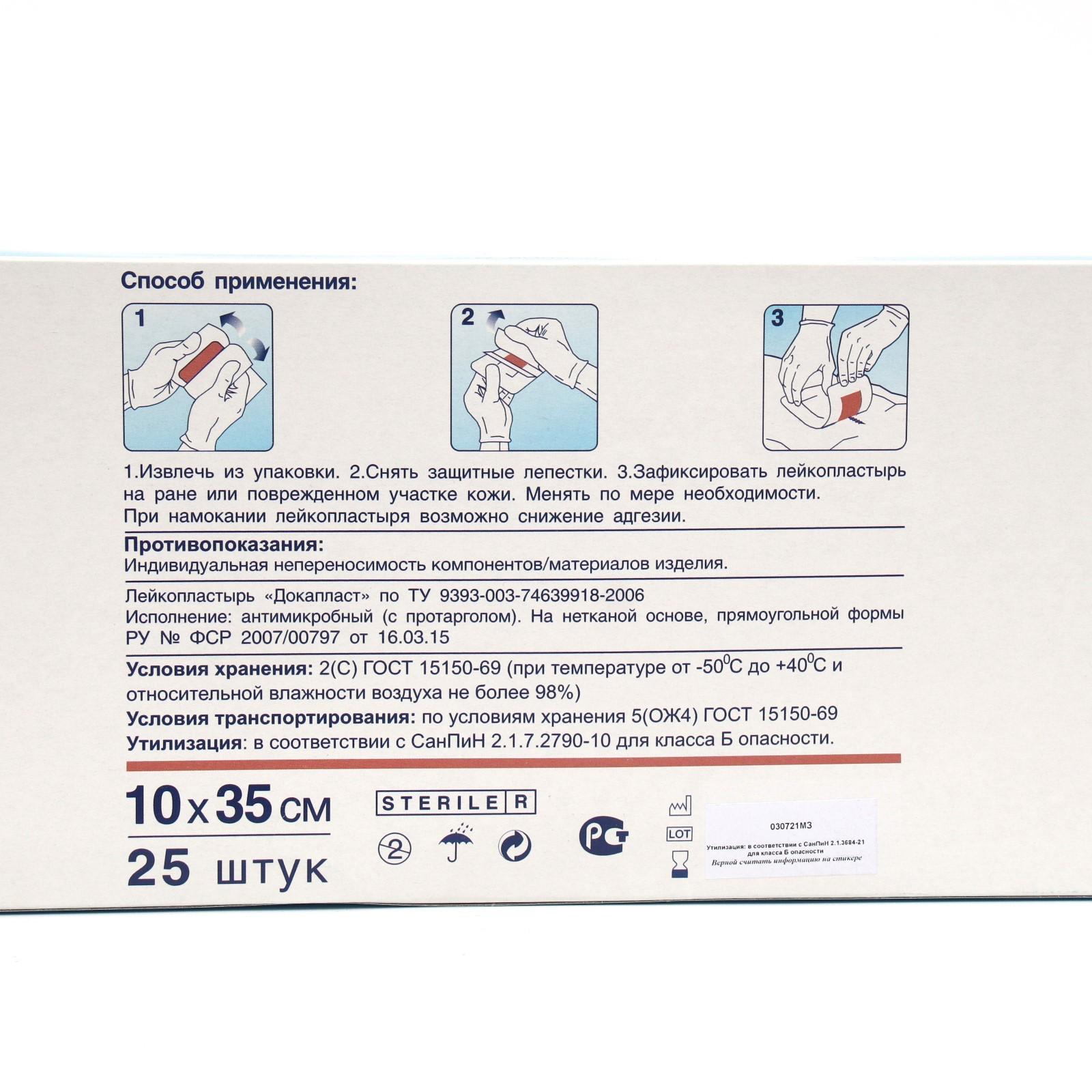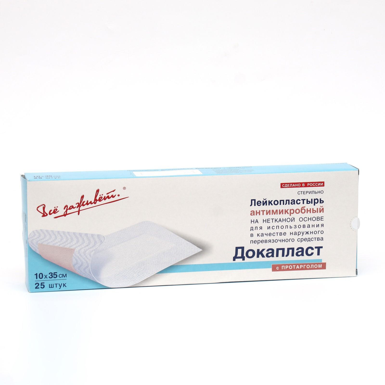 Лейкопластырь "Докапласт" антимикробный с Протарголом, 10*35см., 25 шт