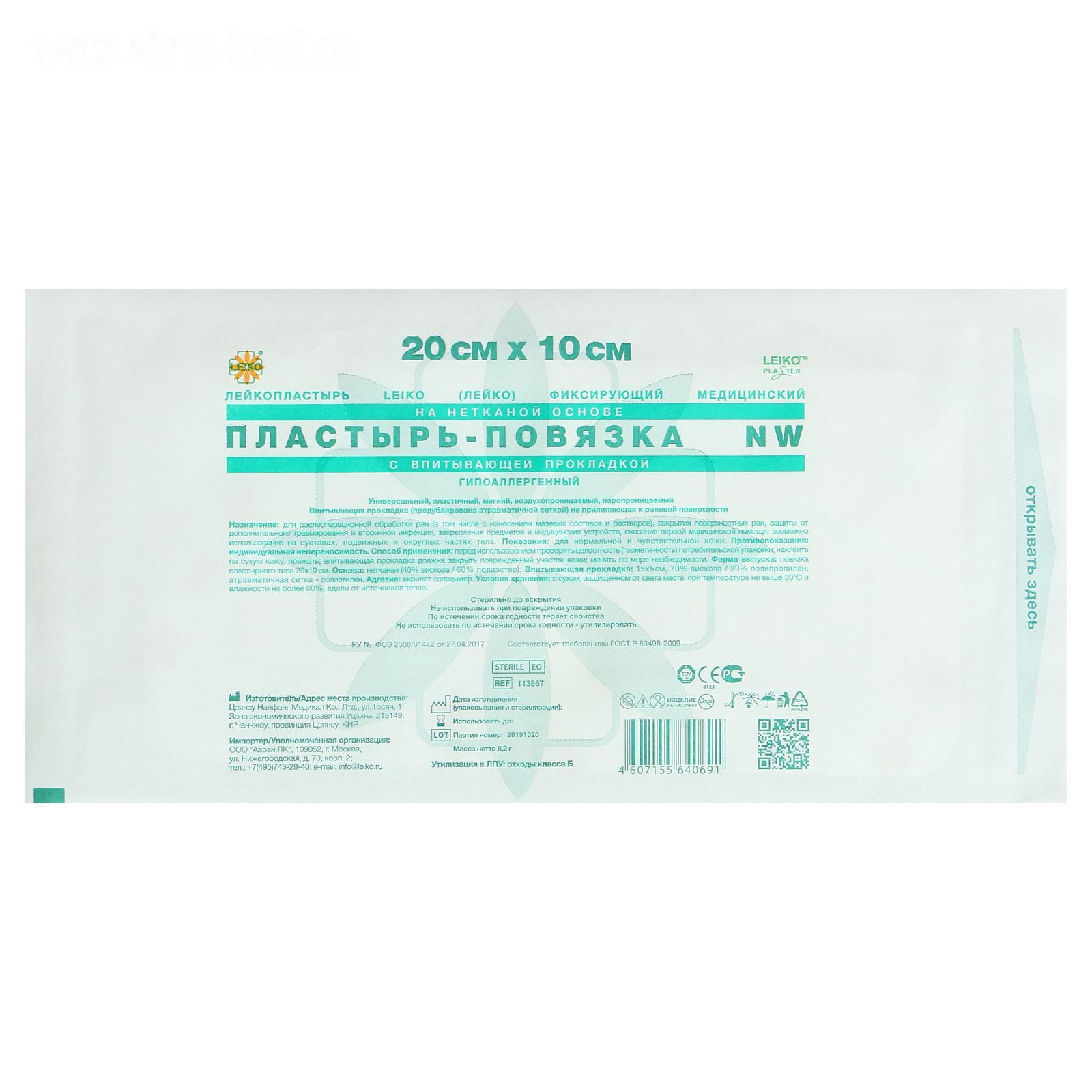 Пластырь-повязка «LEIKO» NW, фиксирующий, гипоаллергенный, 20 см х 10 см