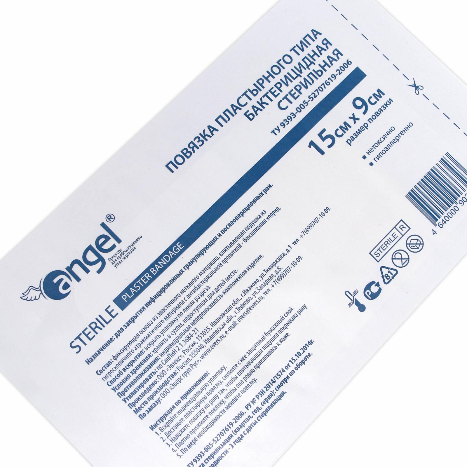 Повязки раневые Angel бактерицидные, 15*9 см, 10 шт