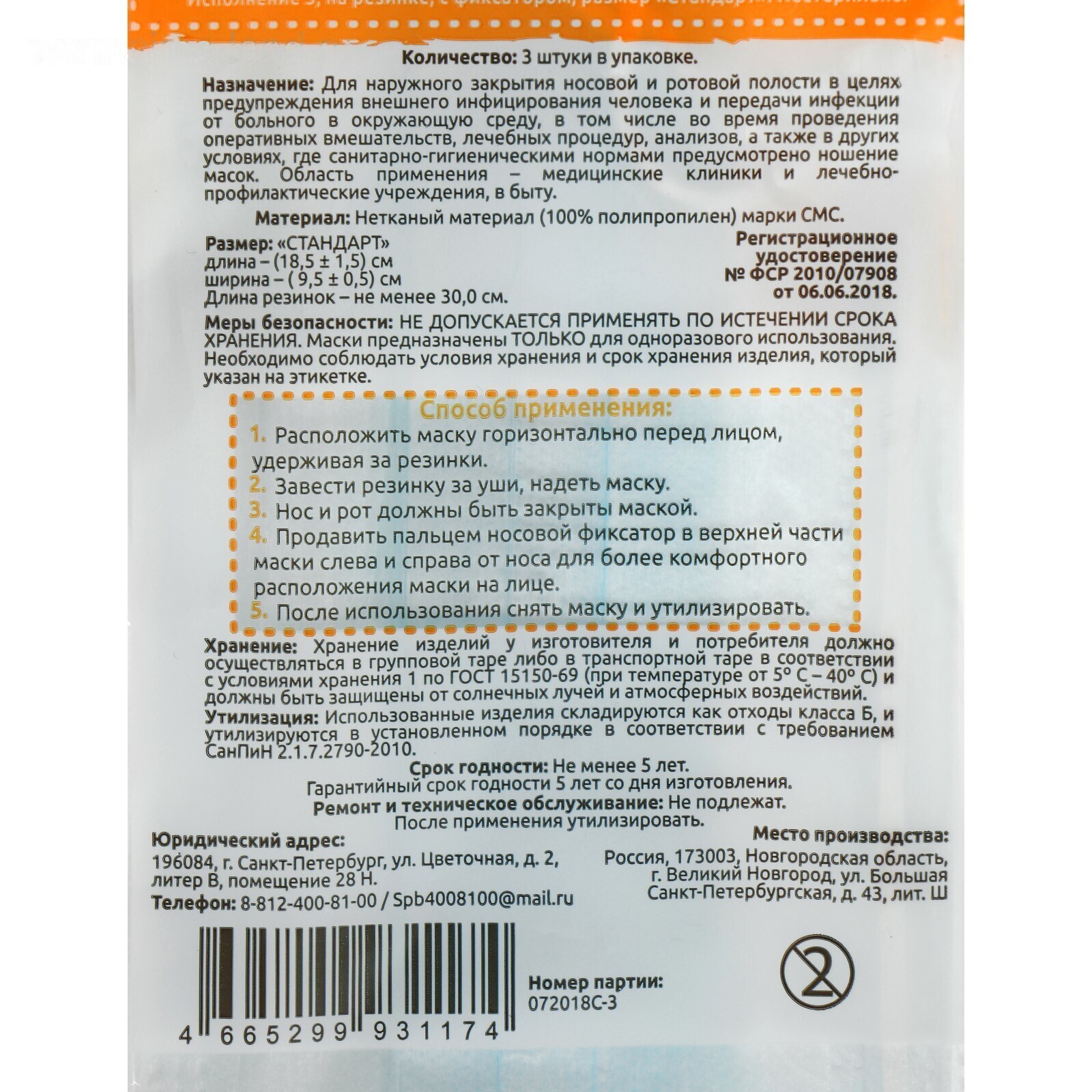 Маска медицинская одноразовая в индивидуальной упаковке предназначена для защиты органов дыхания.