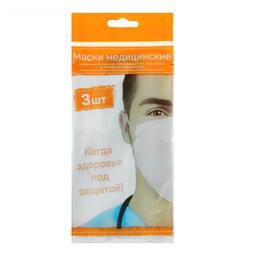Маска медицинская, трехслойная, 3 штуки в упаковке, голубая