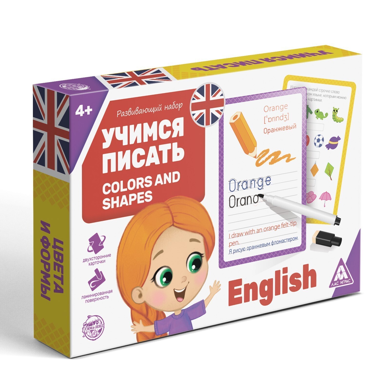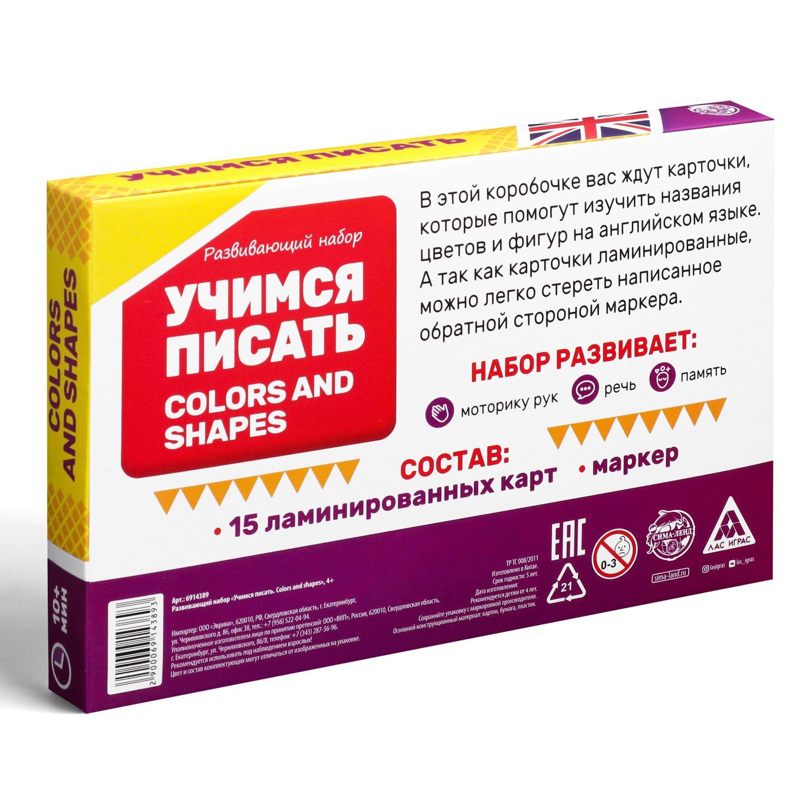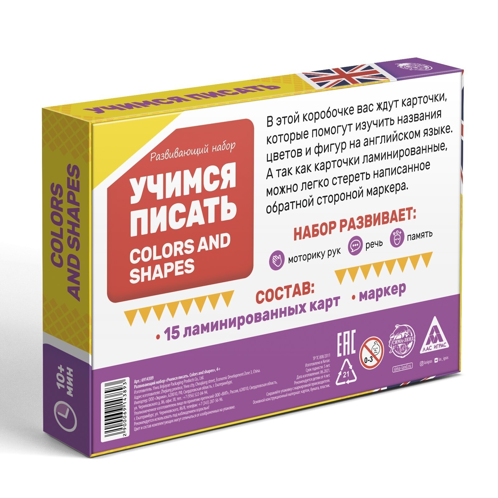Развивающий набор пиши-стирай «Учимся писать. Colors and shapes», 15 карт