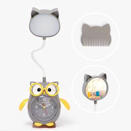 Часы-светильник "Совушка", с будильником, зеркало, расческа, 800 мАч, дискретный ход, АА,USB
