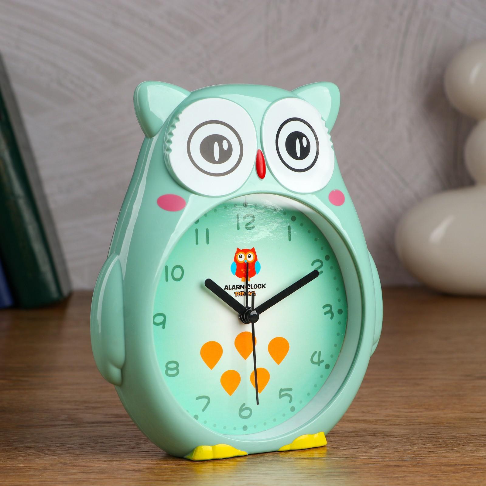 Будильник детский "Совушка", дискретный ход, d-11 см, 14.5 х 4 х 16 см, зеленый