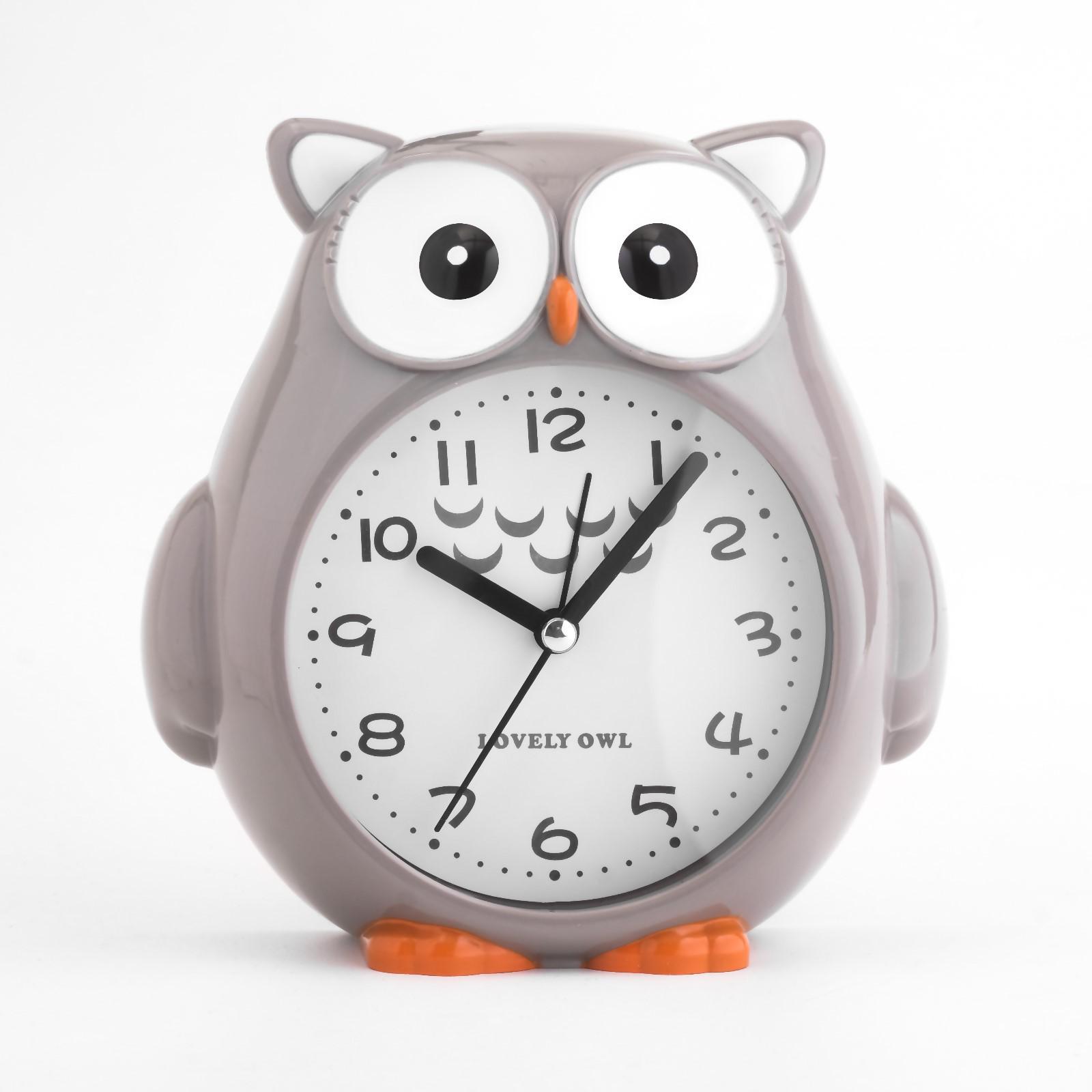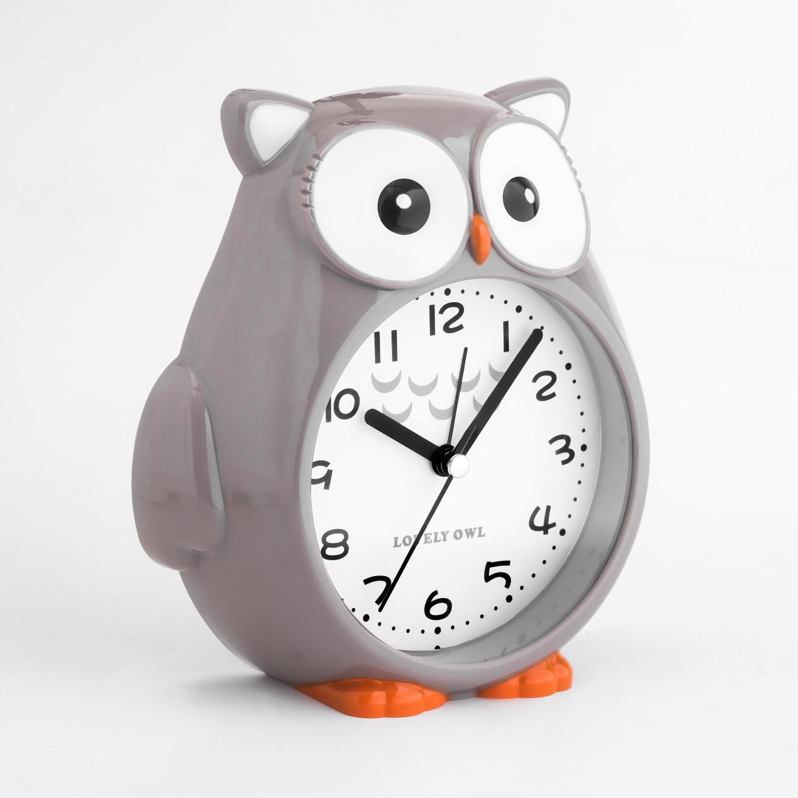 Будильник детский "Совушка", дискретный ход, d-9 см, 14.5 х 4 х 16 см, серый