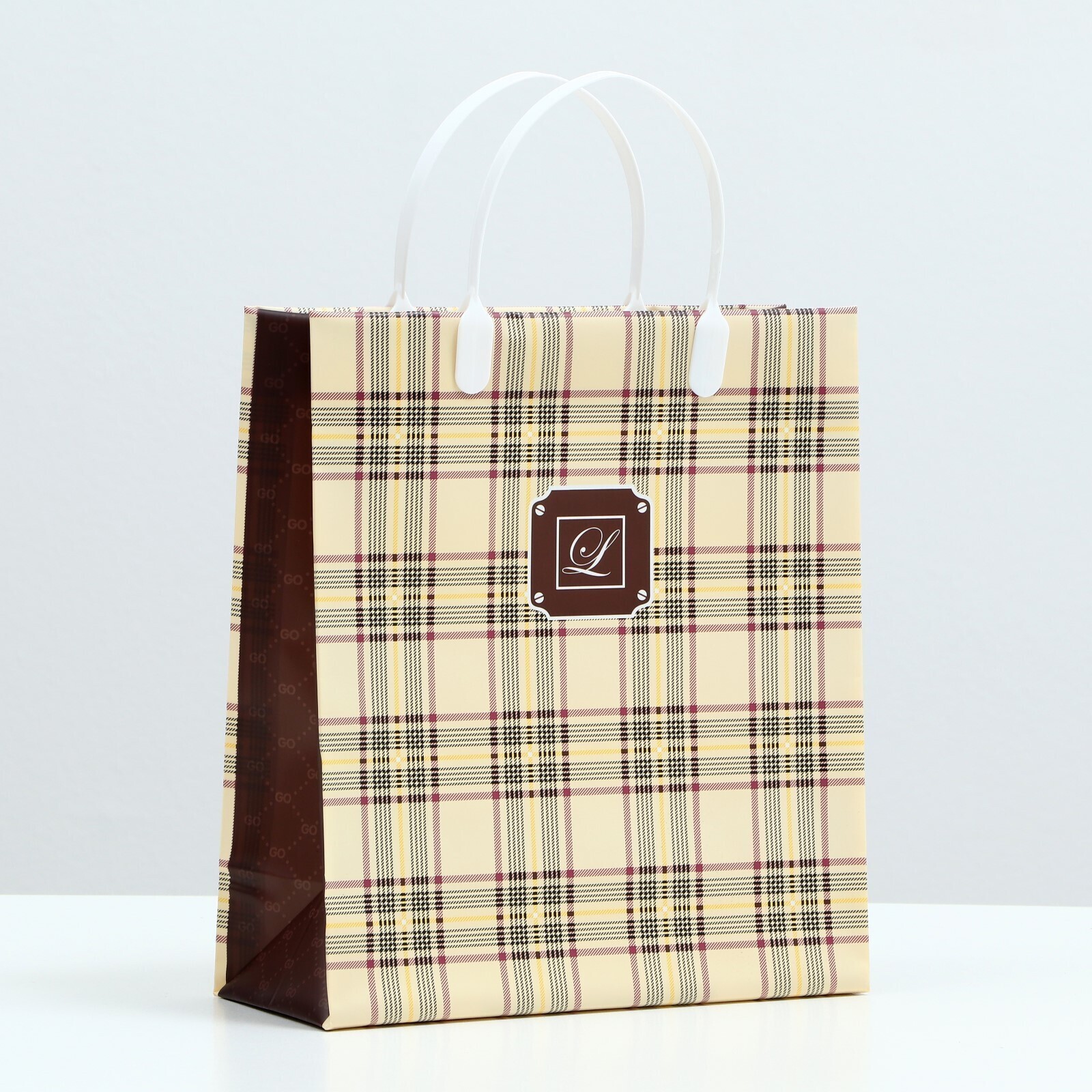 Пакет "Джентльмен", бежевый, мягкий пластик, 26 x 23 см, 100 мкм