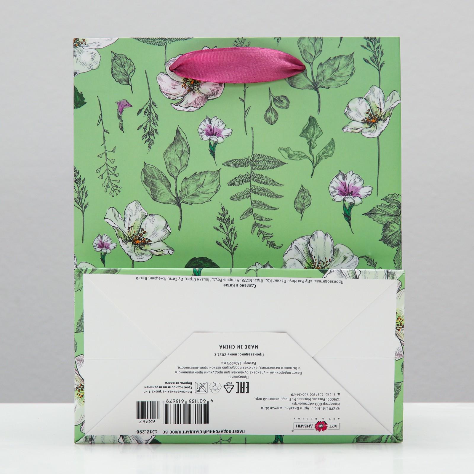 Пакет подарочный "Цветочный принт", 18 х 22,3 х 10 см