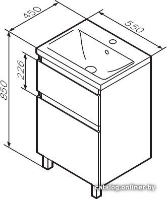 • Глубина тумбы под умывальник 44.5 см