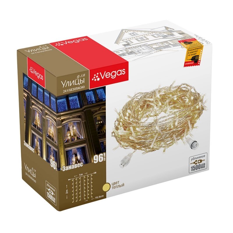 Электрогирлянда-конструктор "Занавес" 96 теплых LED, 6 нитей прозр провод, 1*2 м БЕЗ БЛОКА VEGAS 24V