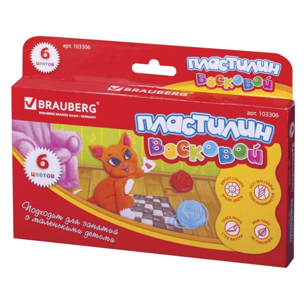 Пластилин на основе воска для малышей от 3 лет. Обладает повышенной мягкостью и пластичностью. Подходит не только для лепки, но и для создания объемных картин на бумаге или доске для лепки. Количество цветов в наборе: 6. Тип: восковой. Наличие аксессуара: стек. Вид упаковки: картонная коробка. Масса: 90 г. Масса бруска: 15 г Бренд - BRAUBERG. Производитель - Россия. Артикул - 103306. Штрихкод - 4606224100029
