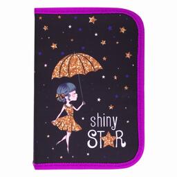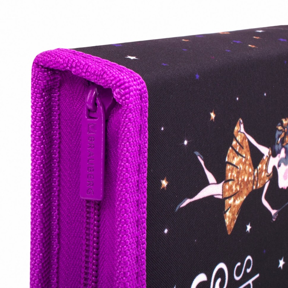 Пенал BRAUBERG, 1 отделение, 2 откидные планки, полиэстер, 21х14 см, "Shiny star", 270312