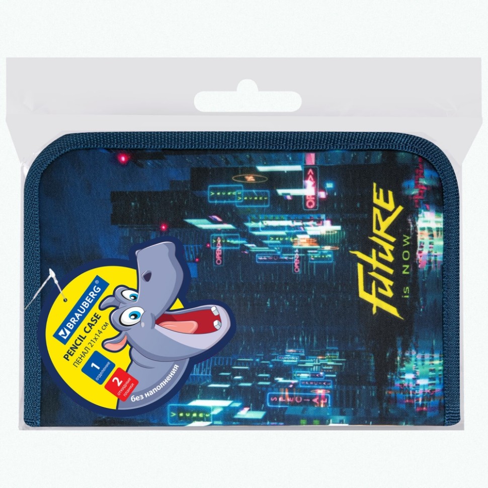 Пенал BRAUBERG, 1 отделение, 2 откидные планки, полиэстер, 21х14 см, Future, 270718