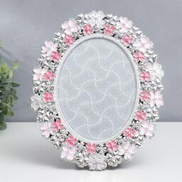 Фоторамка пластик под металл 15х20 см "Незабудки" серебро и розовый 29х24 см