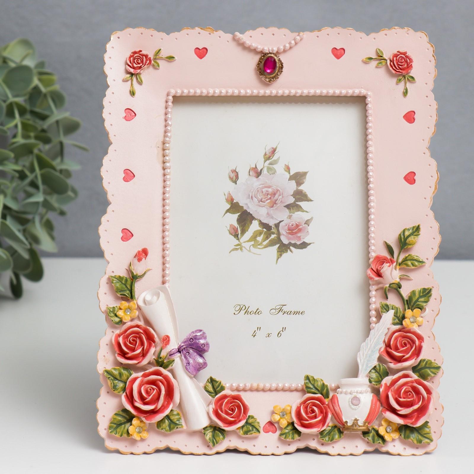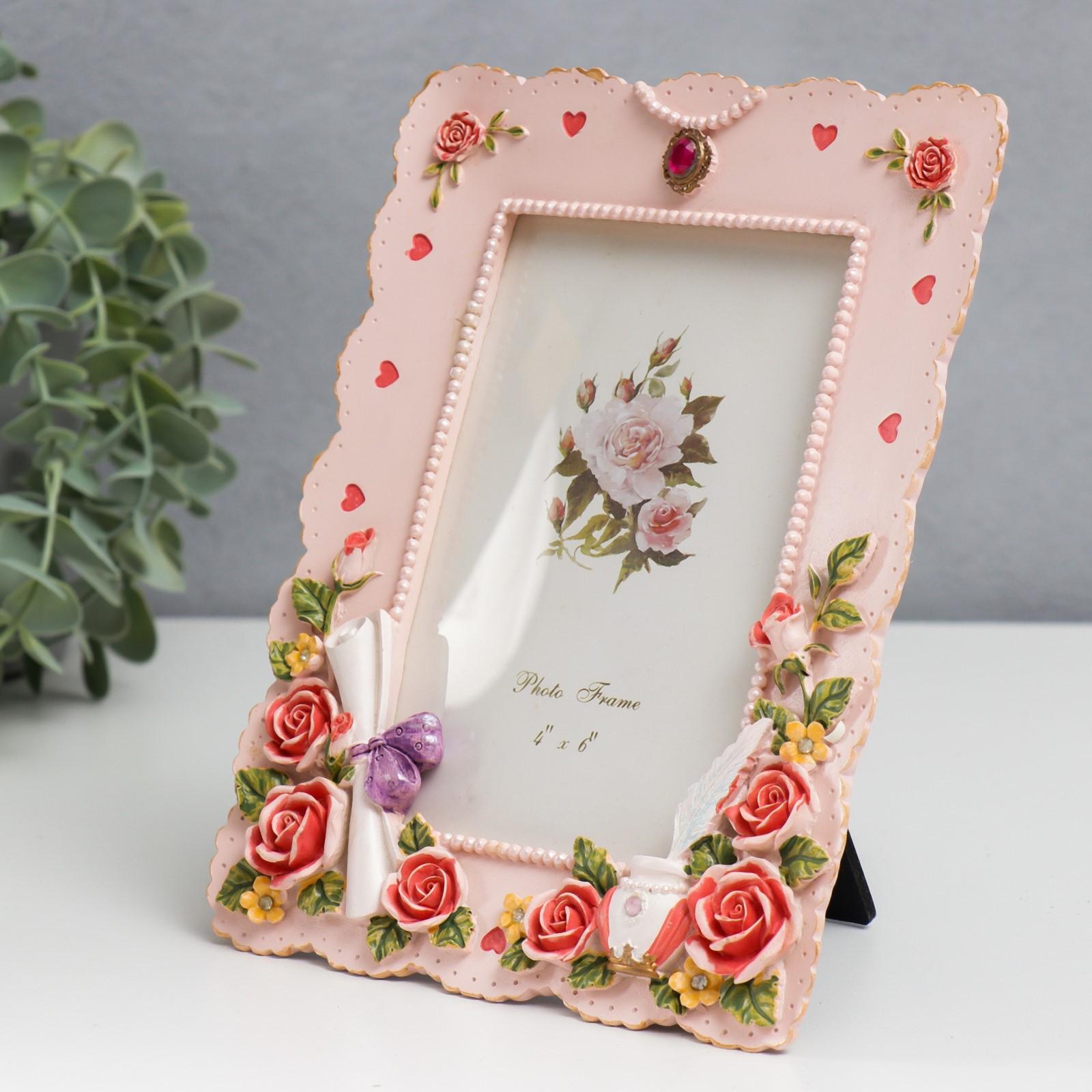 Фоторамка полистоун 10х15 см "Розы и свиток" стразы 20х15 см