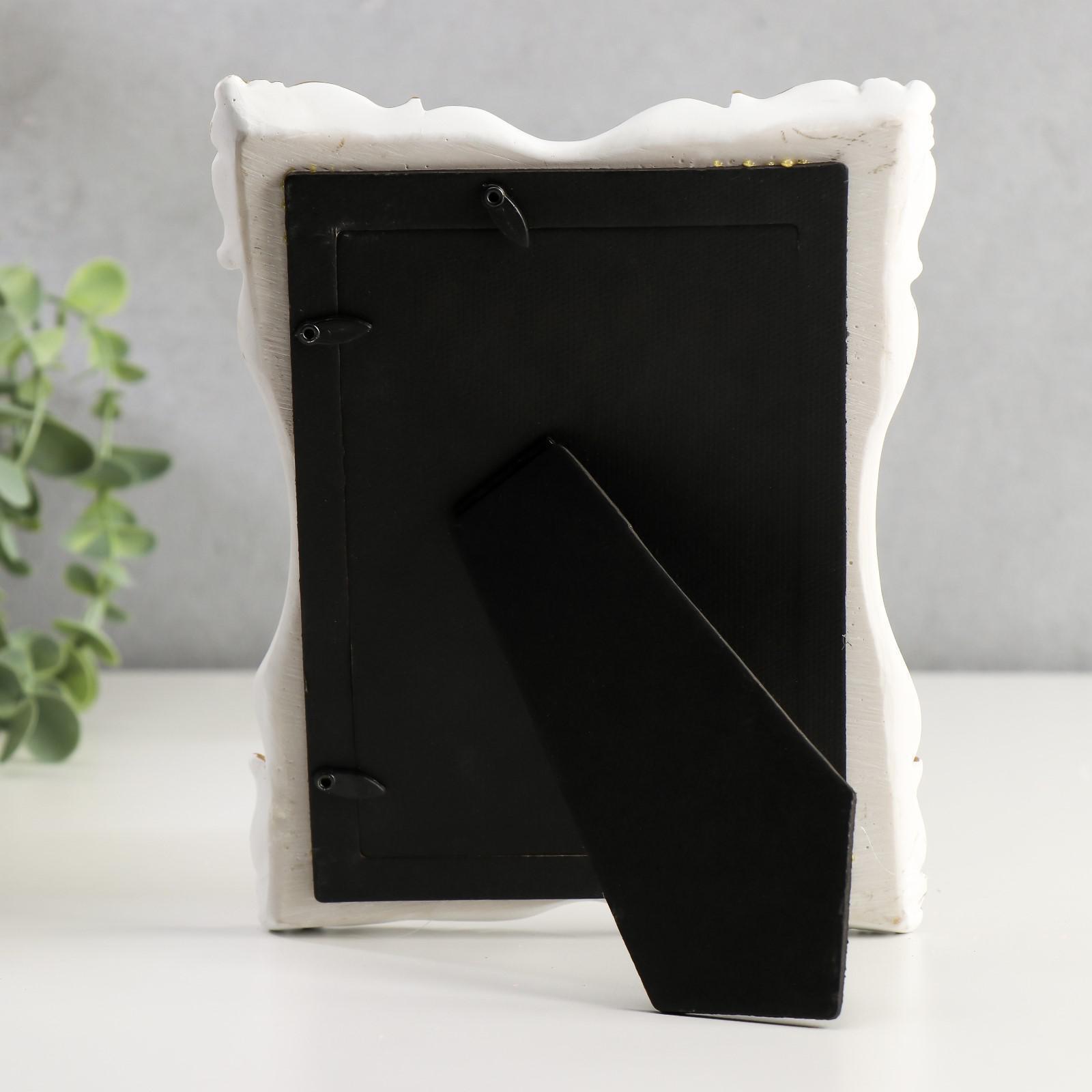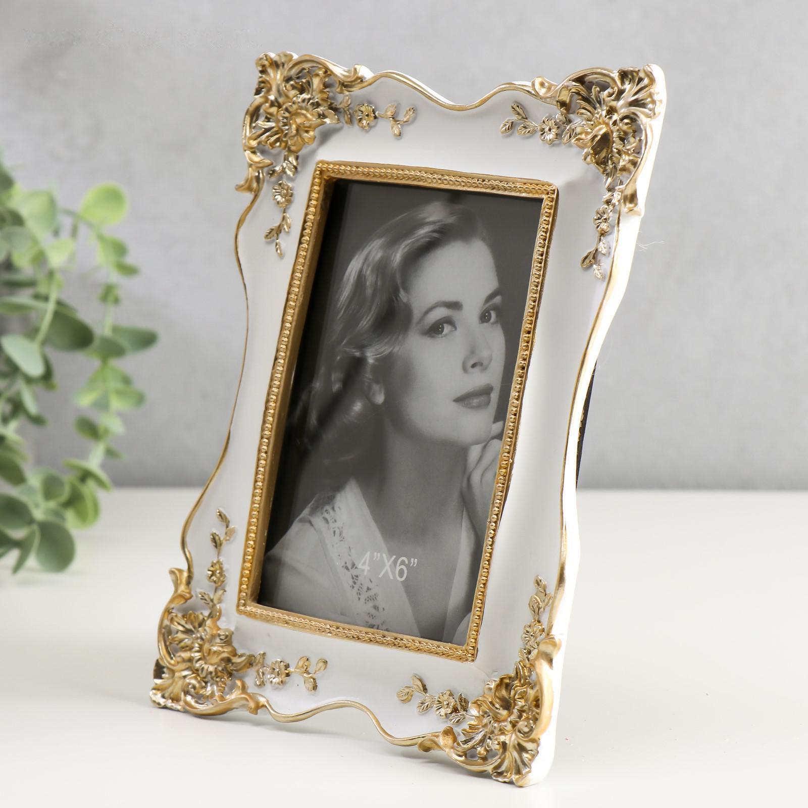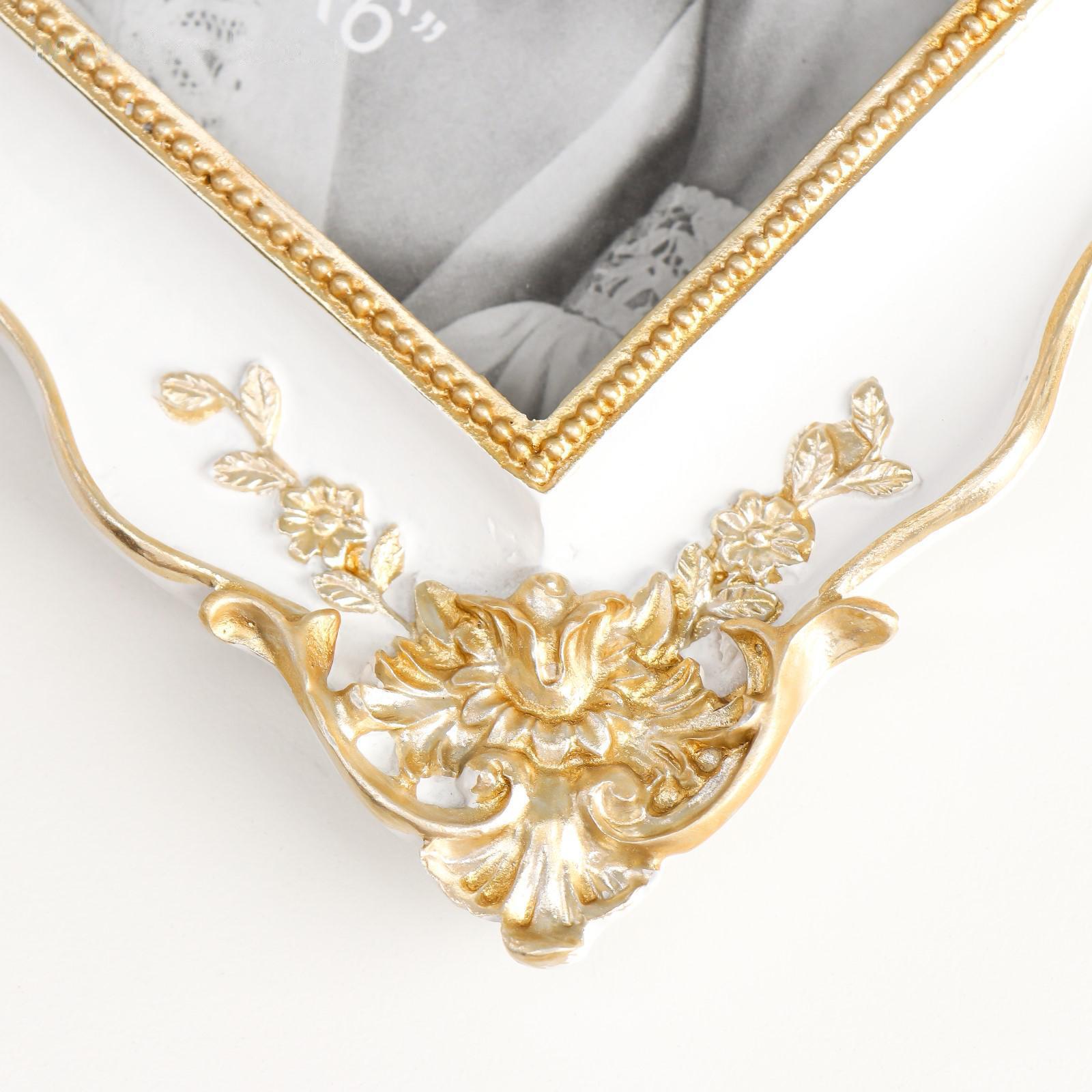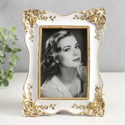 Фоторамка полистоун 10х15 см "Элегия" белая с золотыми уголками 21х16 см