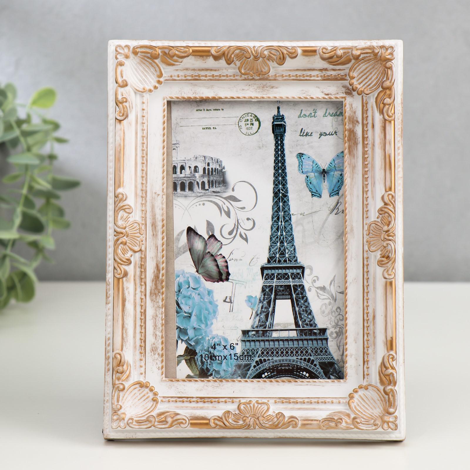 Фоторамка пластик 10х15 см "Узоры" белая с золотыми узорами 19,5х14,5 см