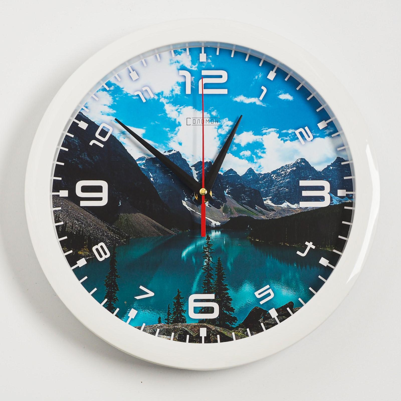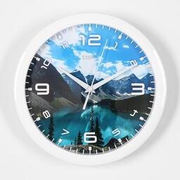 Часы настенные, серия: Природа, "Горное озеро", плавный ход, d=28 см